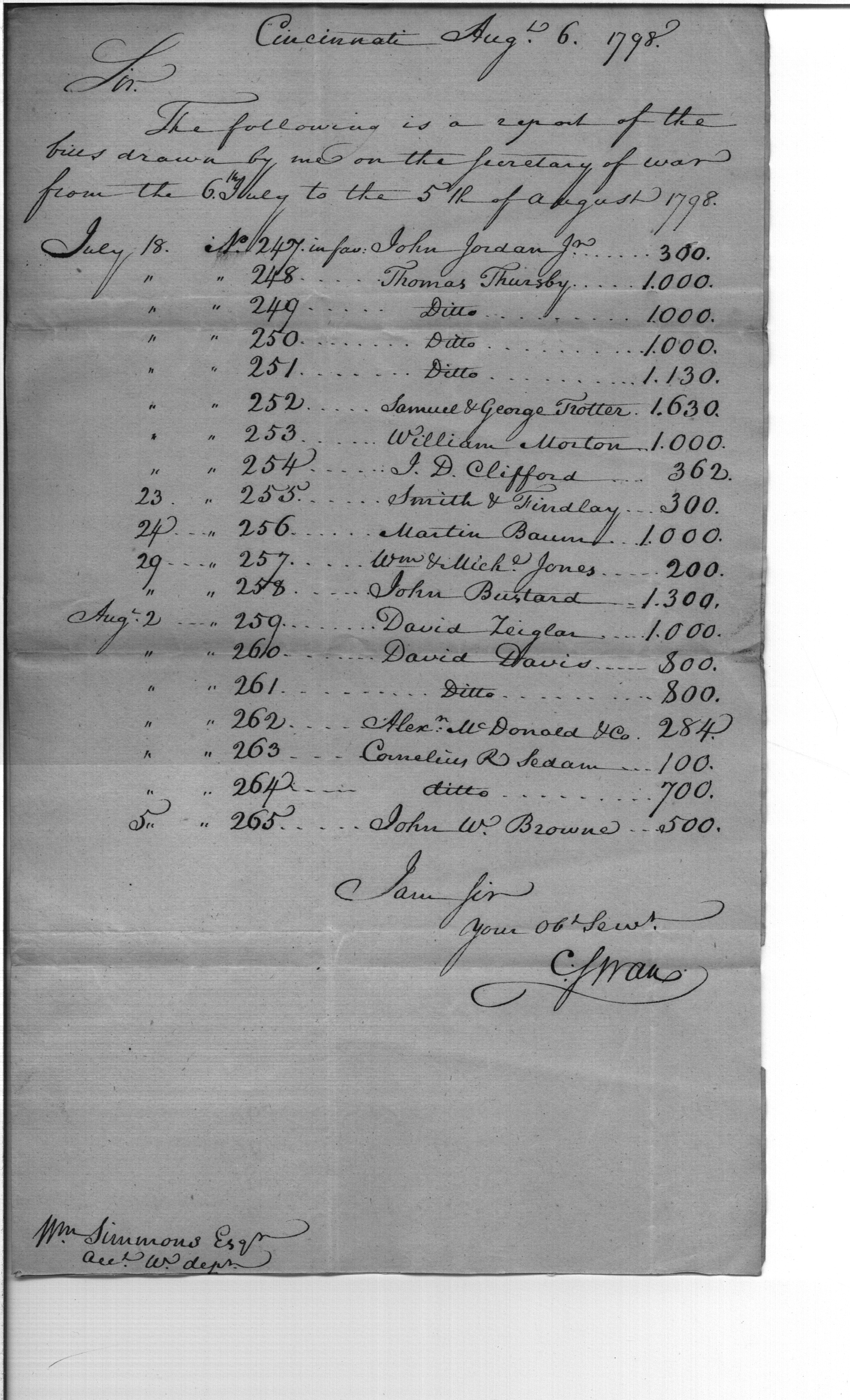 - Document: Report of Bills Drawn by Caleb Swan