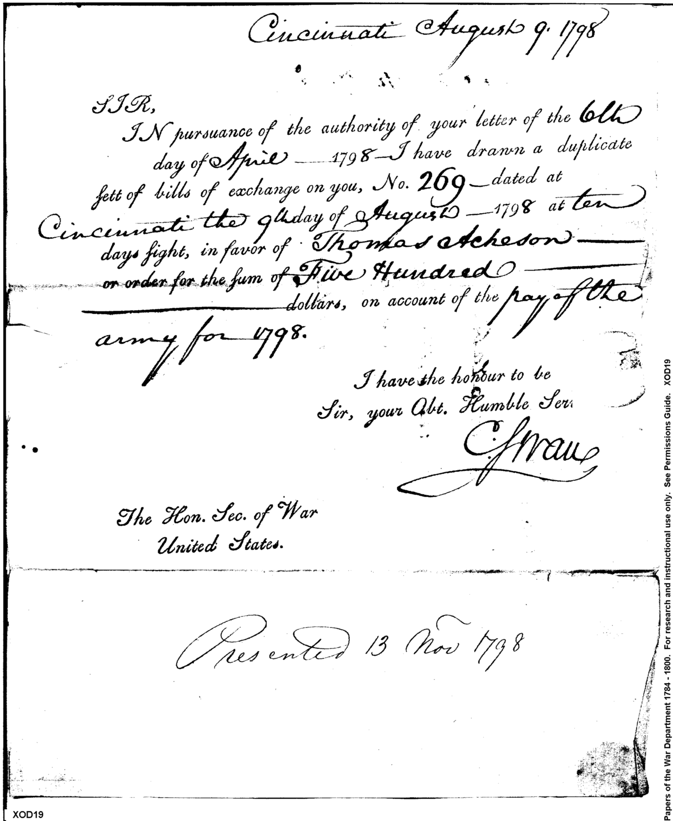 - Document: Pay of the Army, August 1798