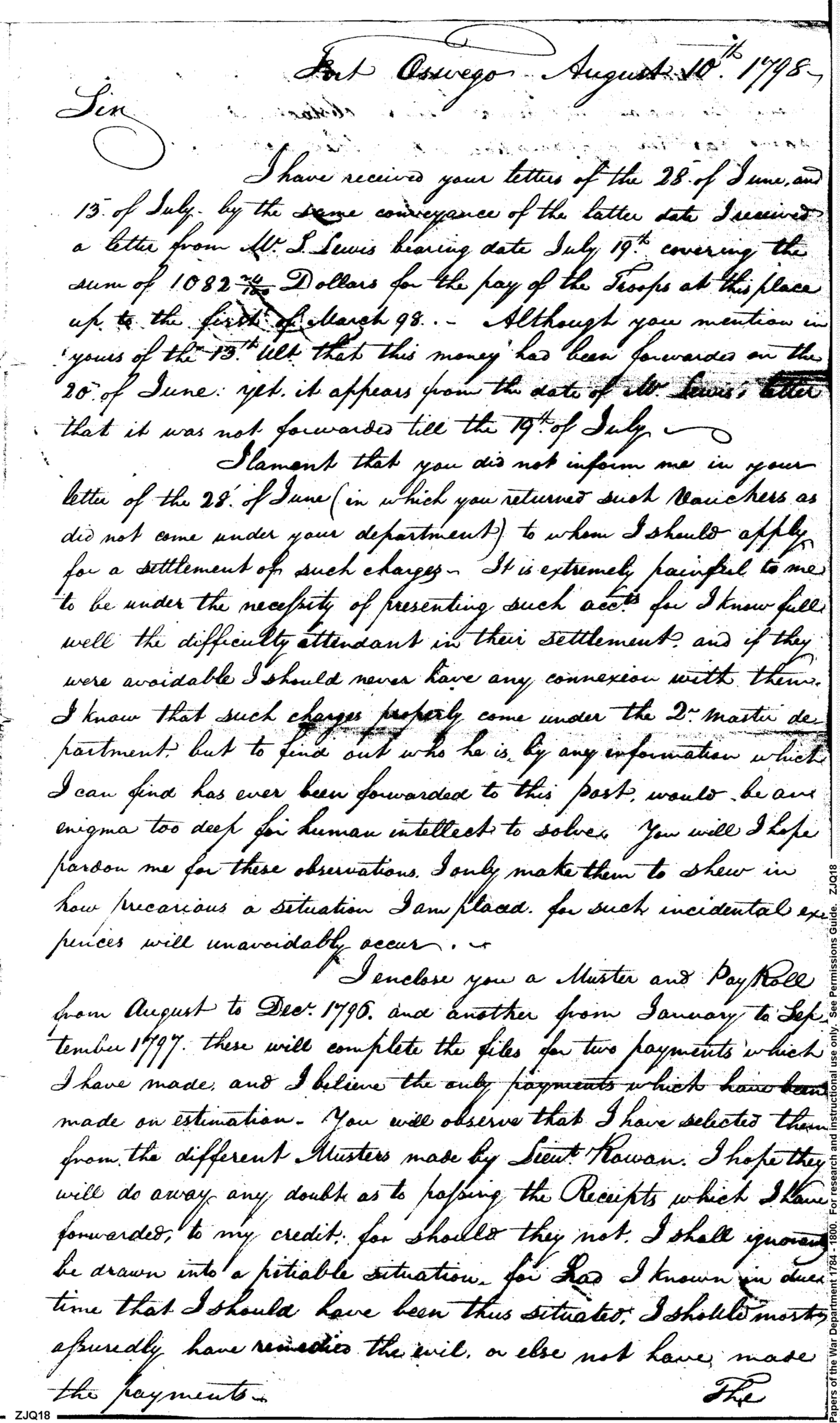 - Document: Pay of the Troops at Fort Oswego