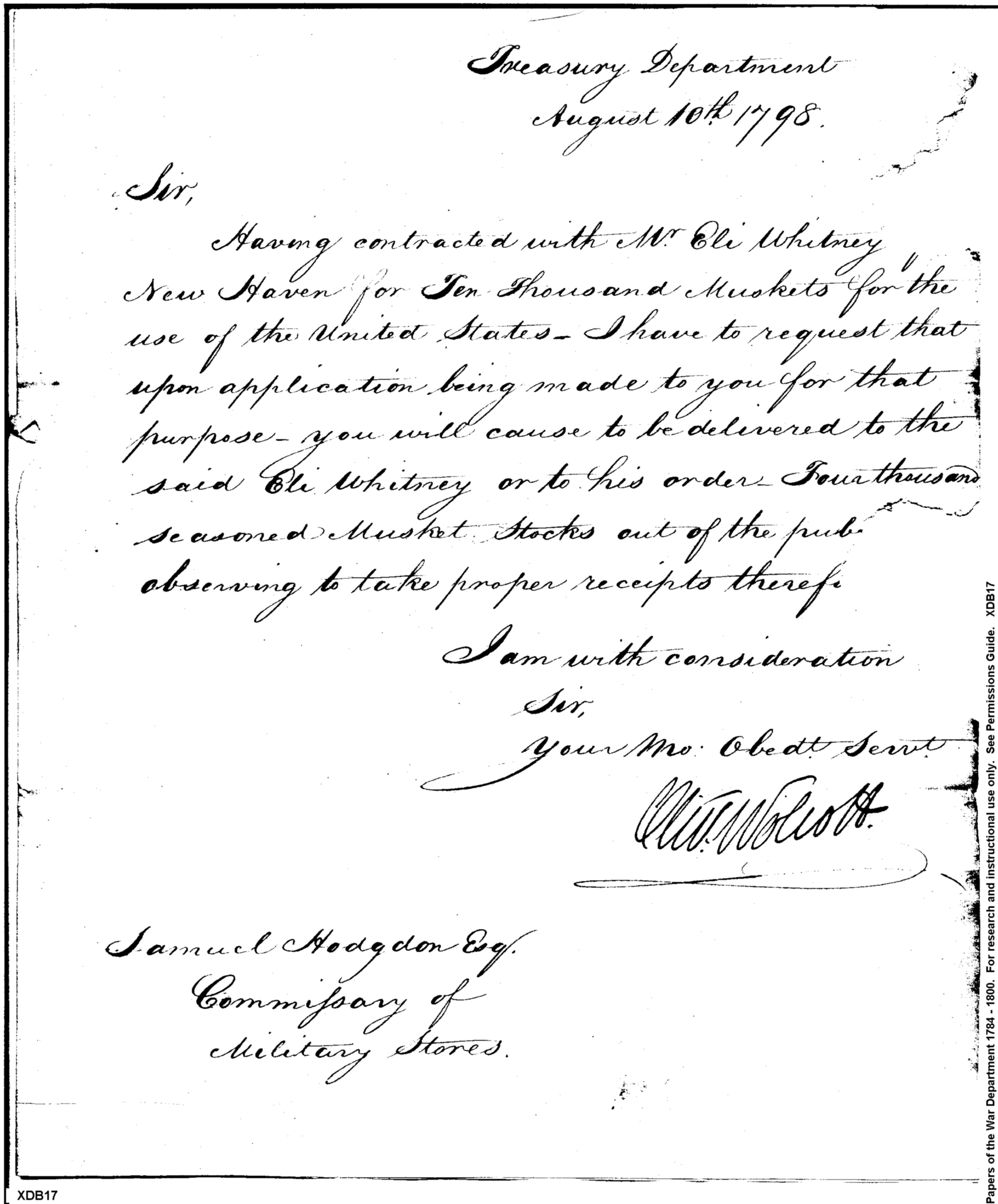 Document ViewerRequest for Issue of Musket Stocks to Eli Whitney