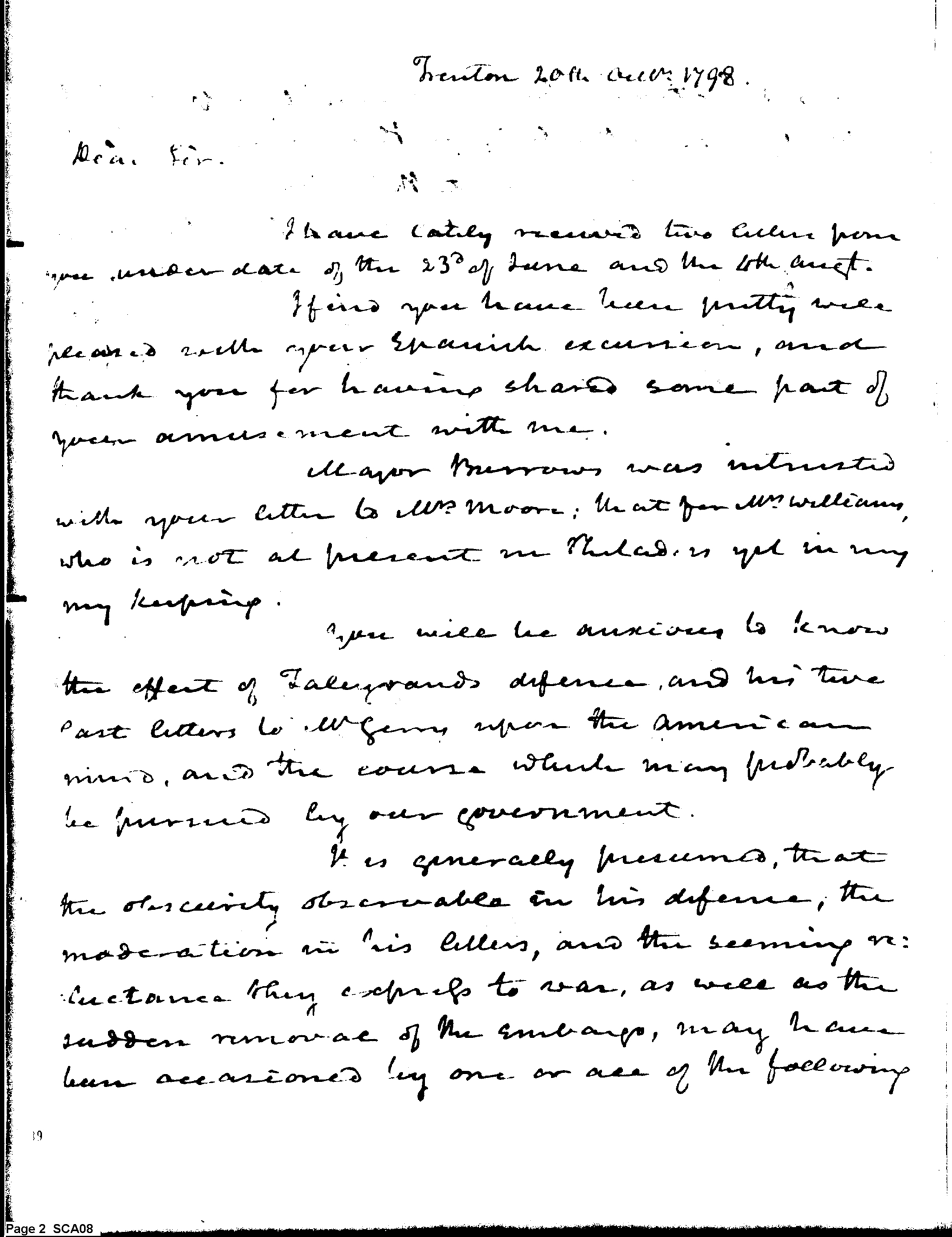 - Document: Letter from James McHenry to William Loughton Smith on developments with France