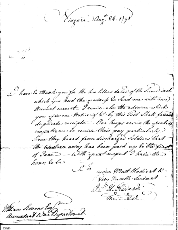 Post Revolutionary War Papers, 1784-1815. (RG94)