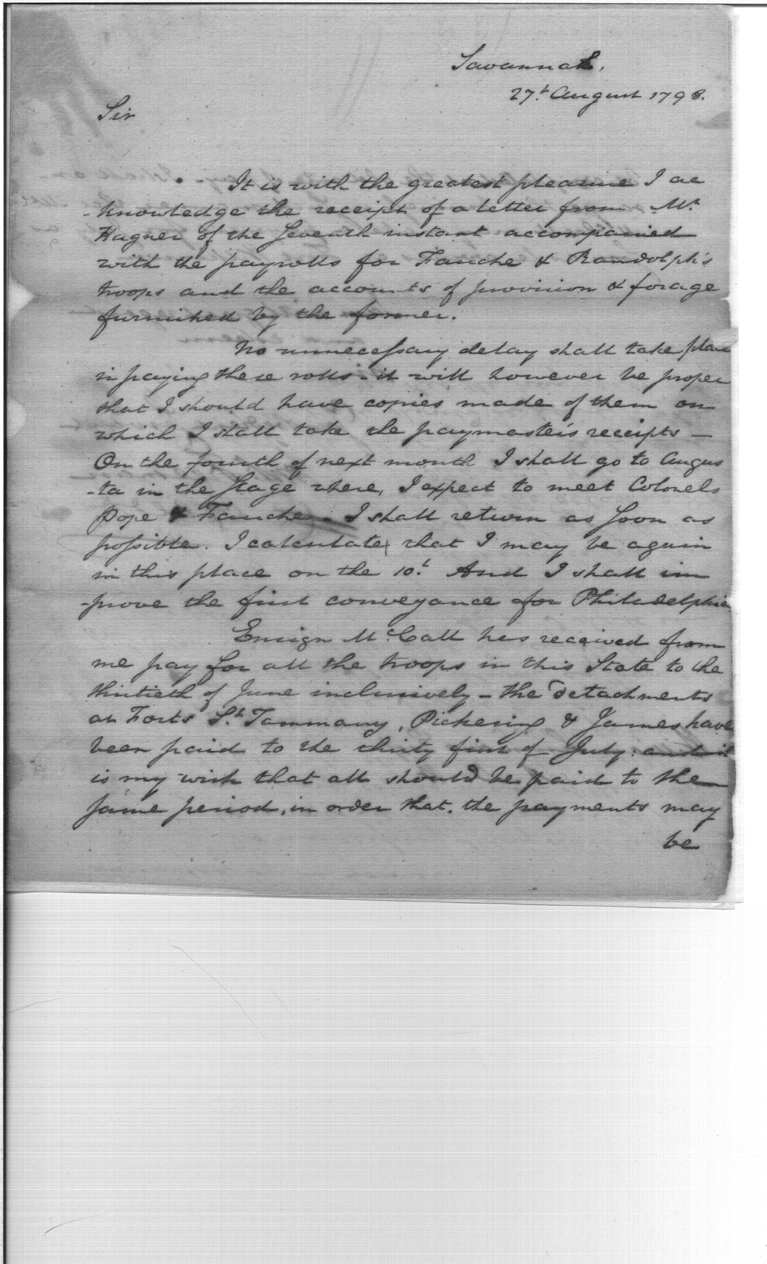 - Document: Pay for Fauche and Randolf Troops Received