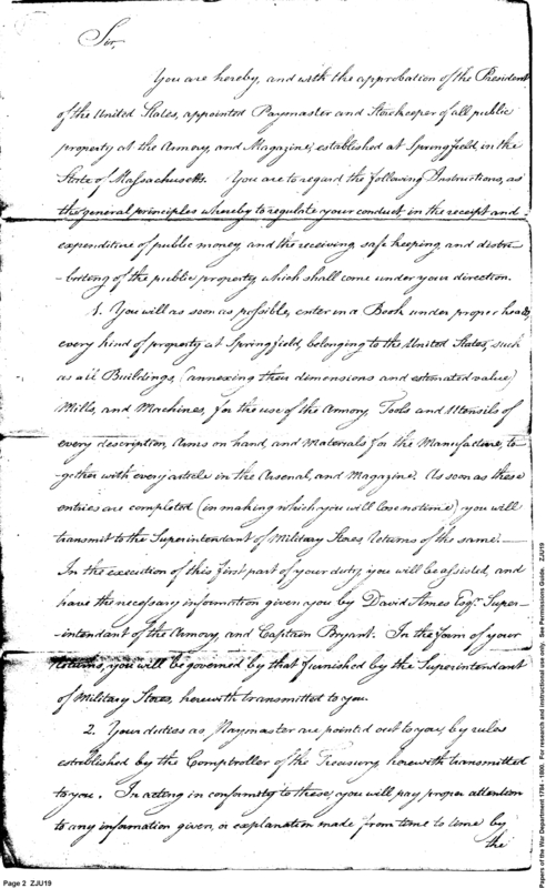 - Document: Appointment as Paymaster and Storekeeper for Springfield Massachusetts