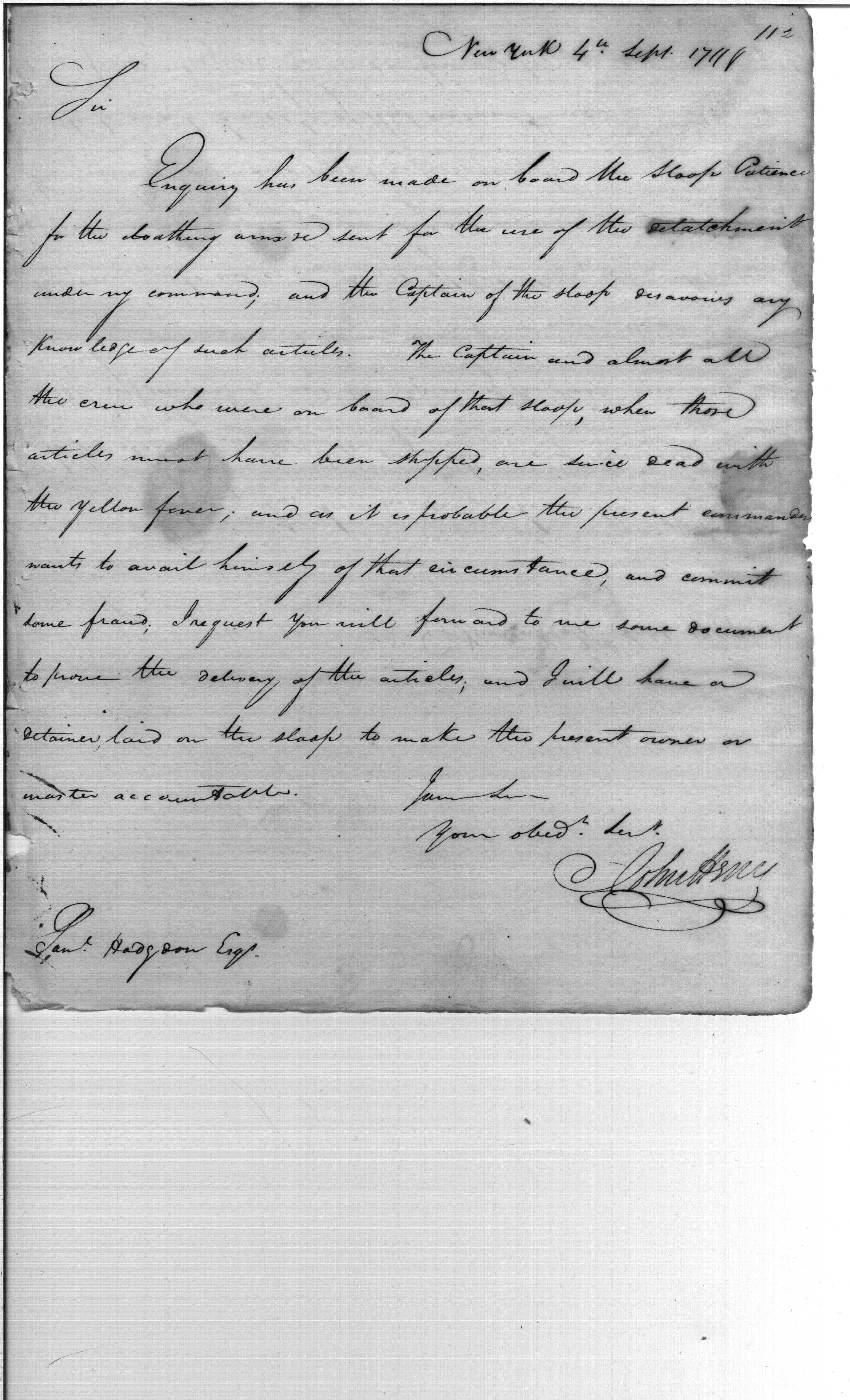 - Document: Shipment of Supplies on Sloop "Patience"