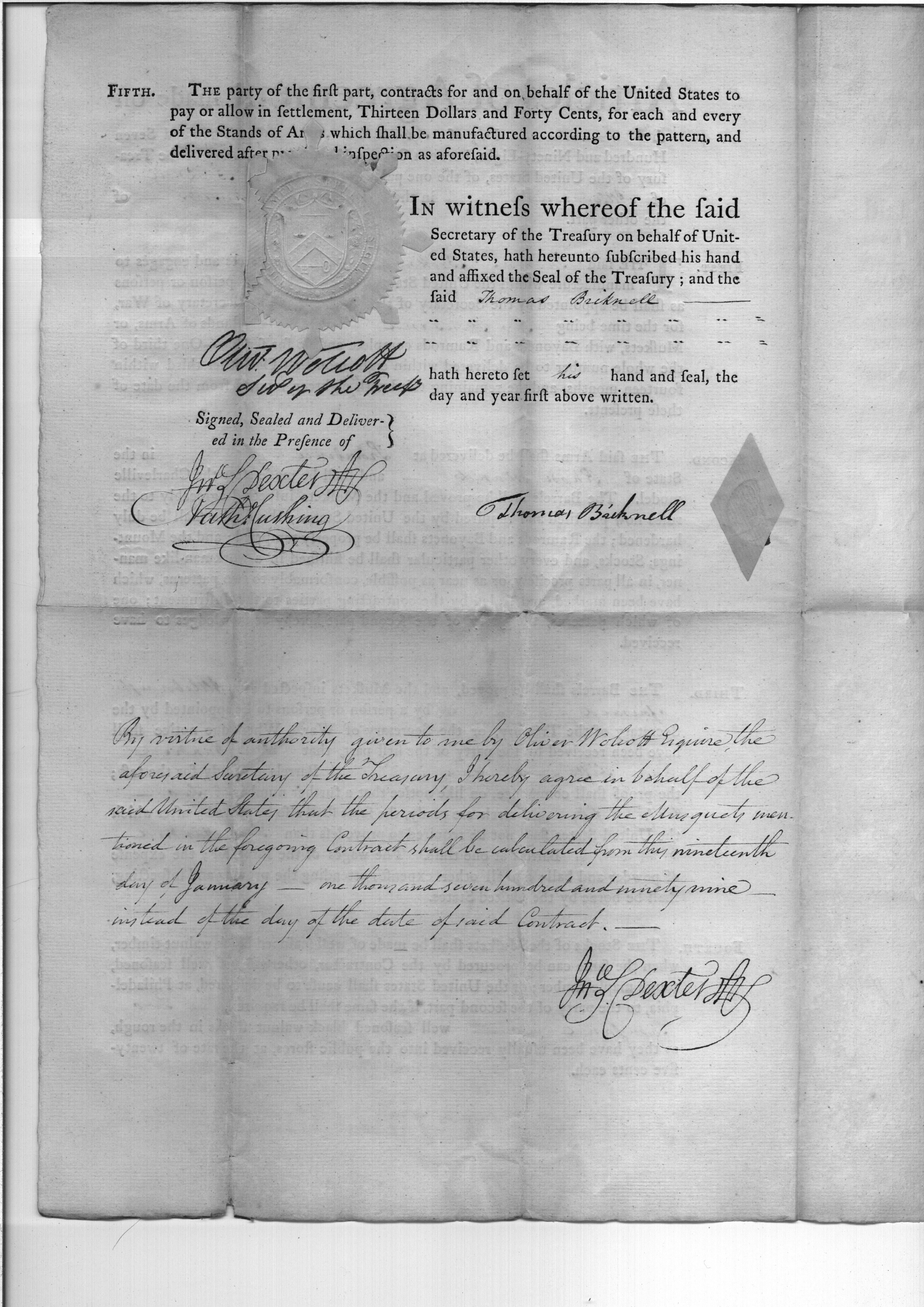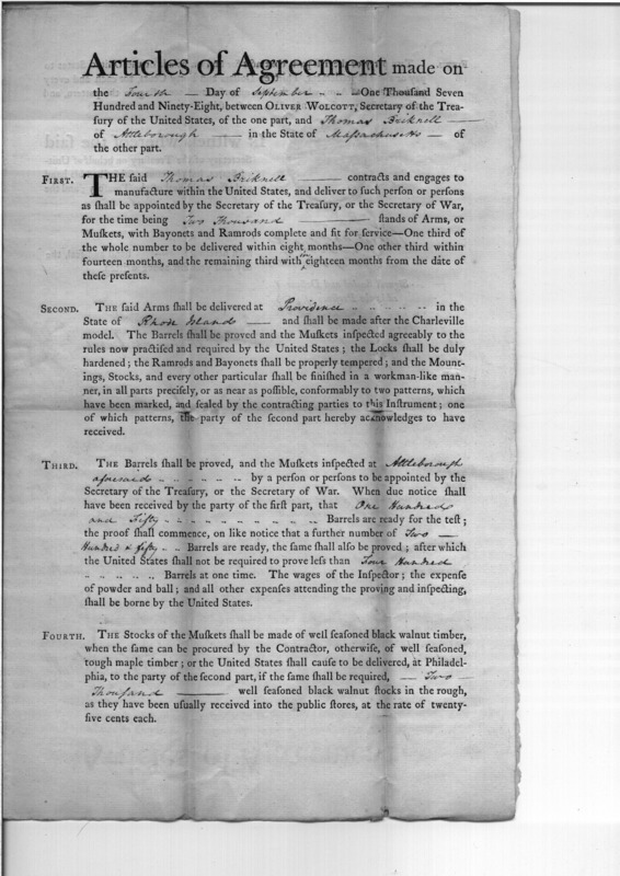 - Document: Contract between Wolcott and Bricknell for manufacture of arms