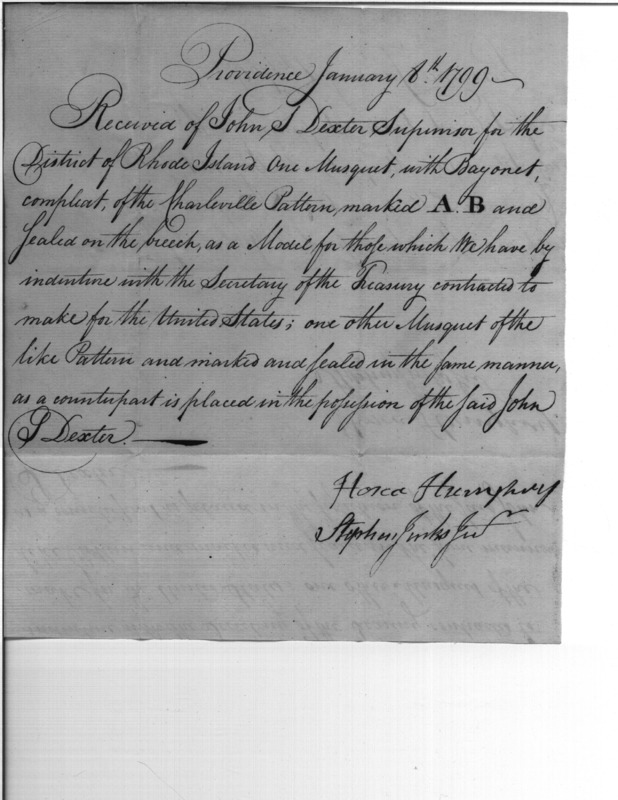 - Document: Contract between Wolcott, Jenkins and Humphreys for arms, muskets and bayonets