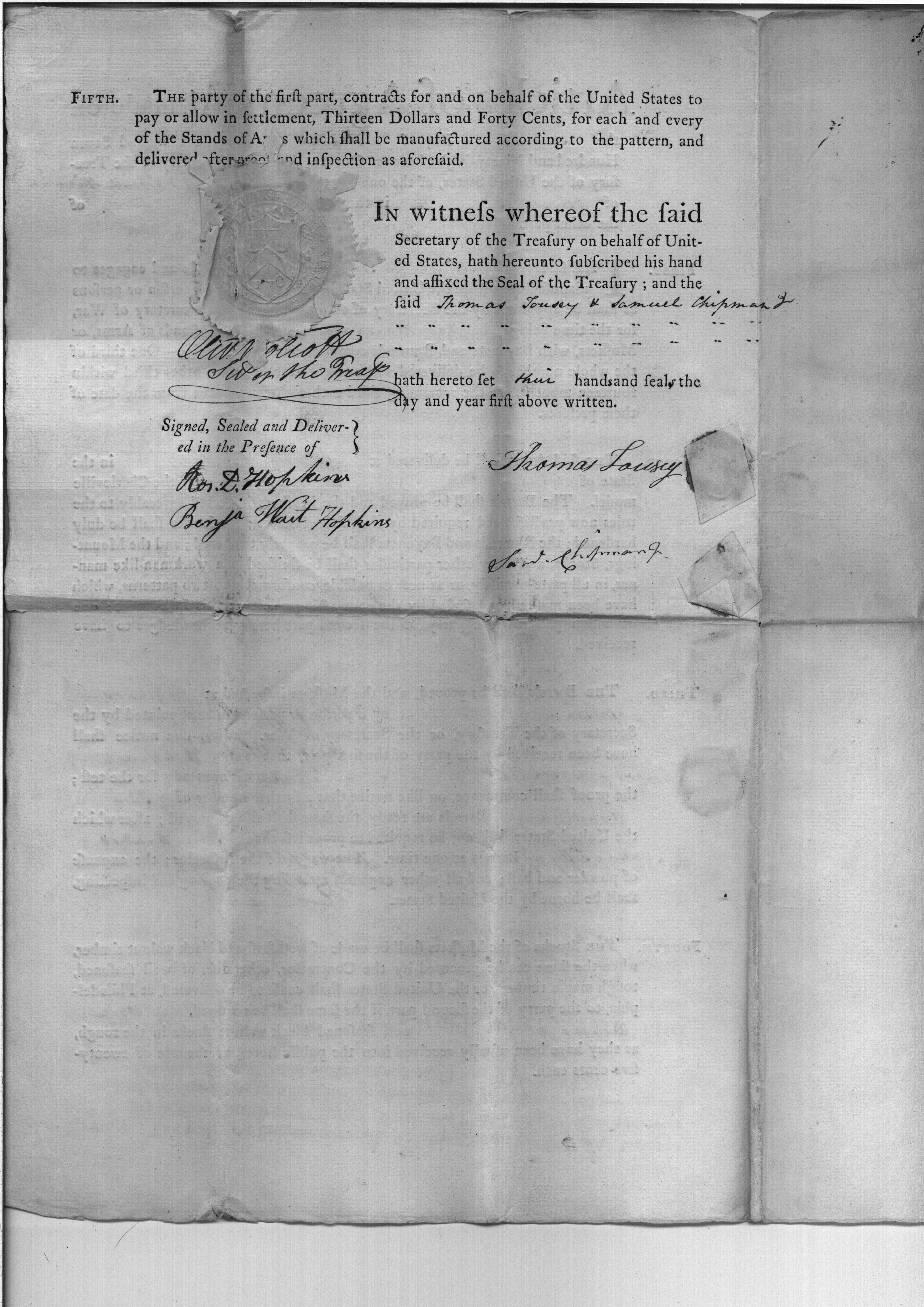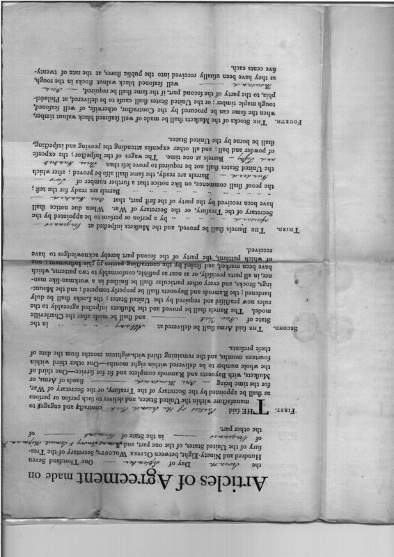 - Document: Contract between Wolcott and Tousey, Chipman for muskets.