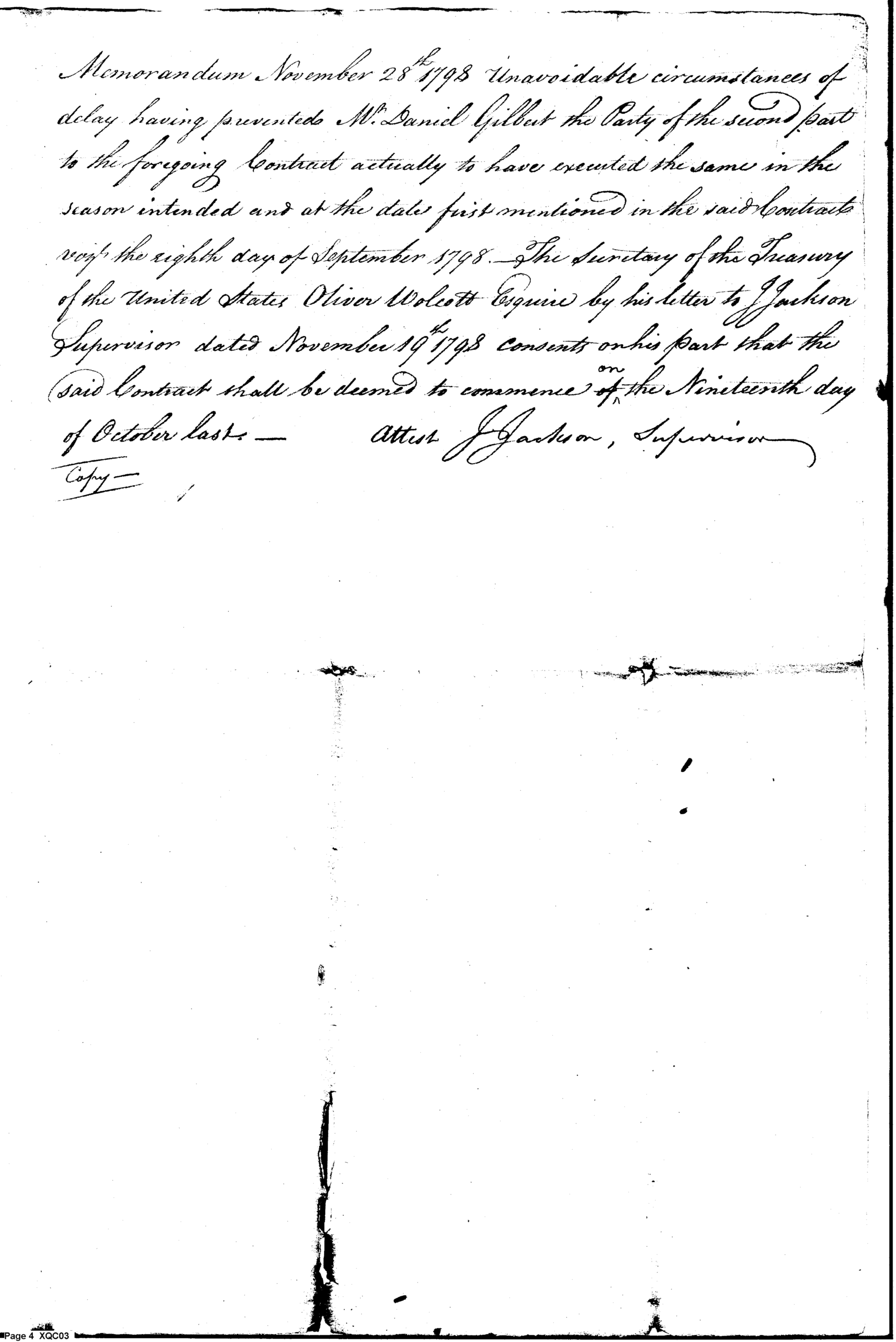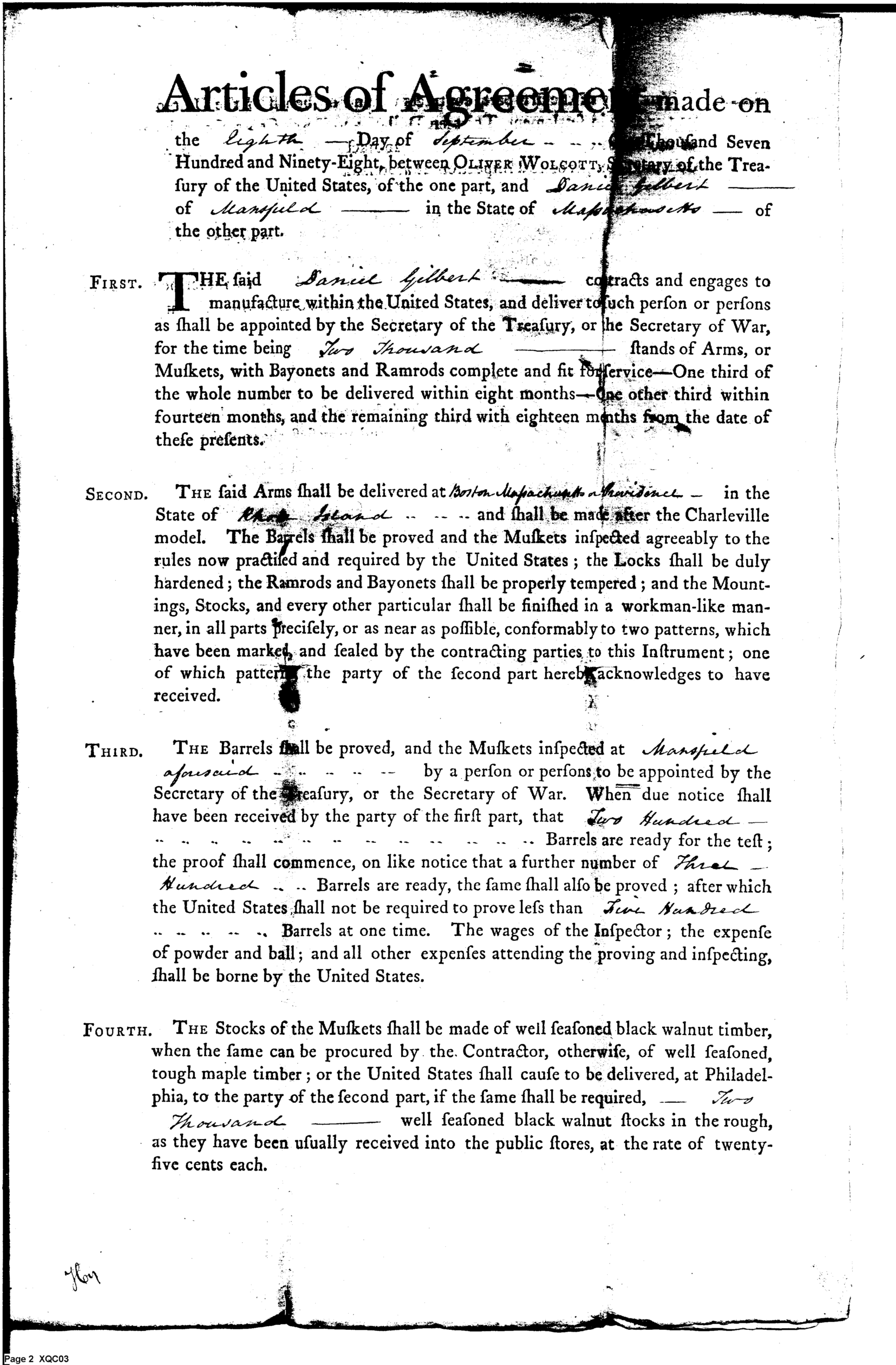 - Document: Contract between Wolcott and Daniel Gilbert for manufacture of muskets.