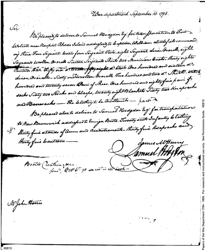 - In source: Collection: Correspondence, Reports, Returns, Bills, Accounts Current' Statements, Receipts, Vouchers and Contracts of Philadelphia Supply Agencies (Coxe and Irvine Papers), 1794-1842. (RG92)