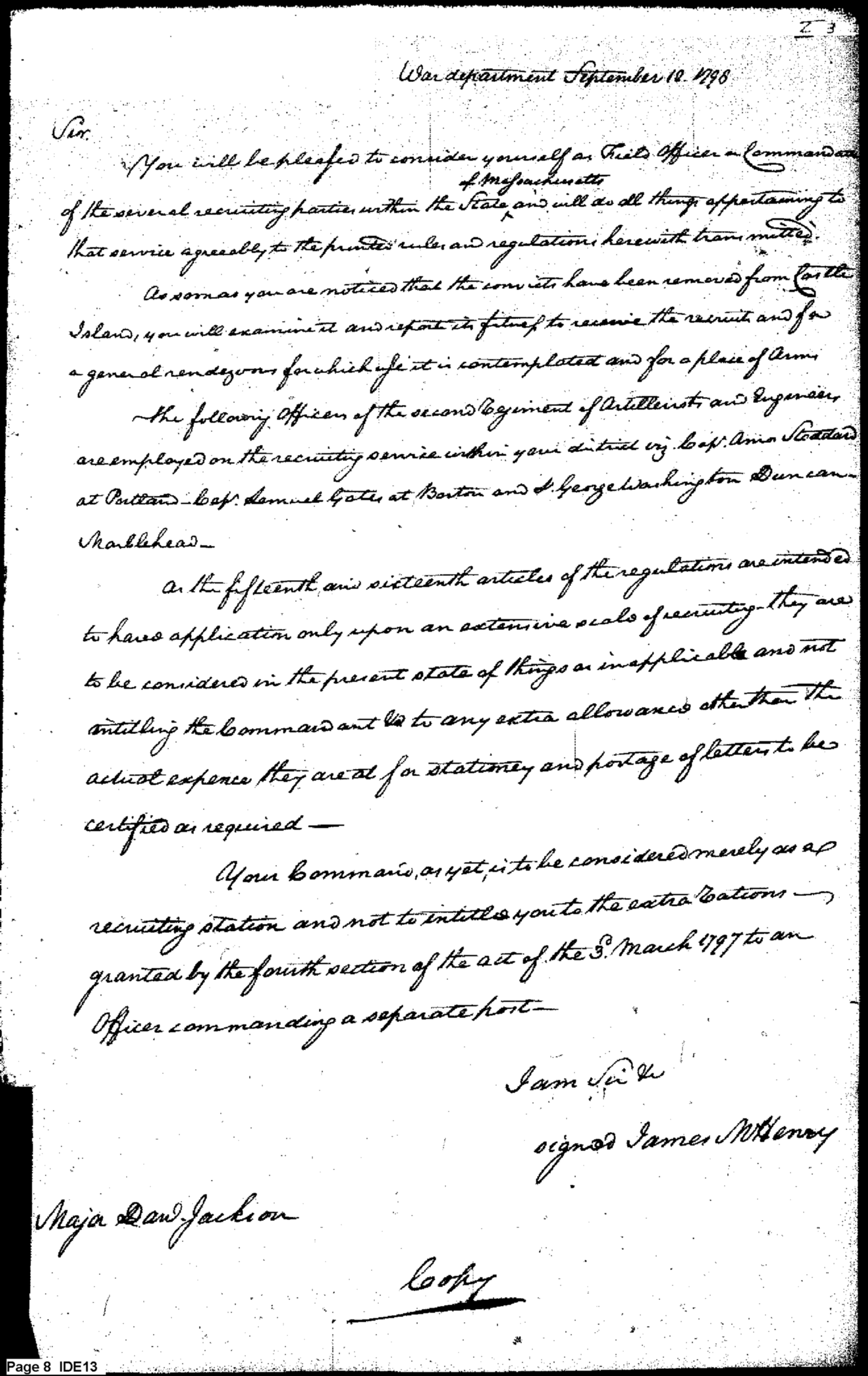 - Document: Appointment as Commandant of Massachusetts Recruiters; Duties & Regulations for That Office