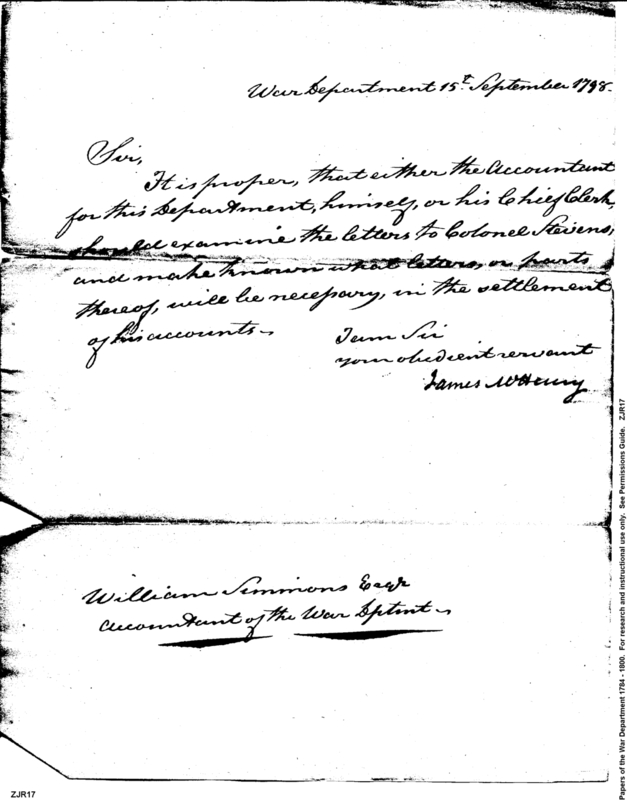 - In source: Collection: Post Revolutionary War Papers, 1784-1815. (RG94)
