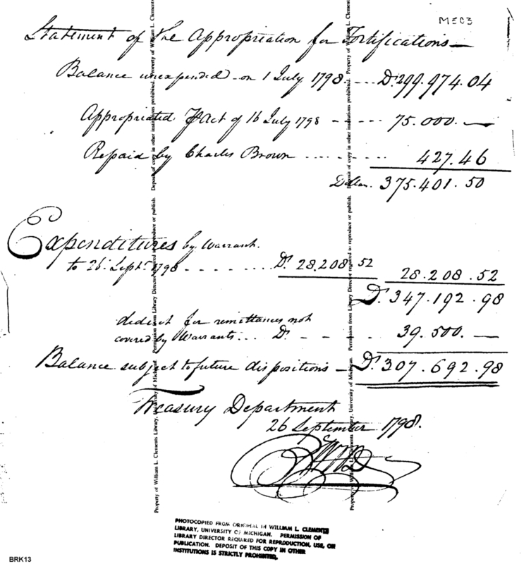 - Document: Statement of the appropriation for fortifications