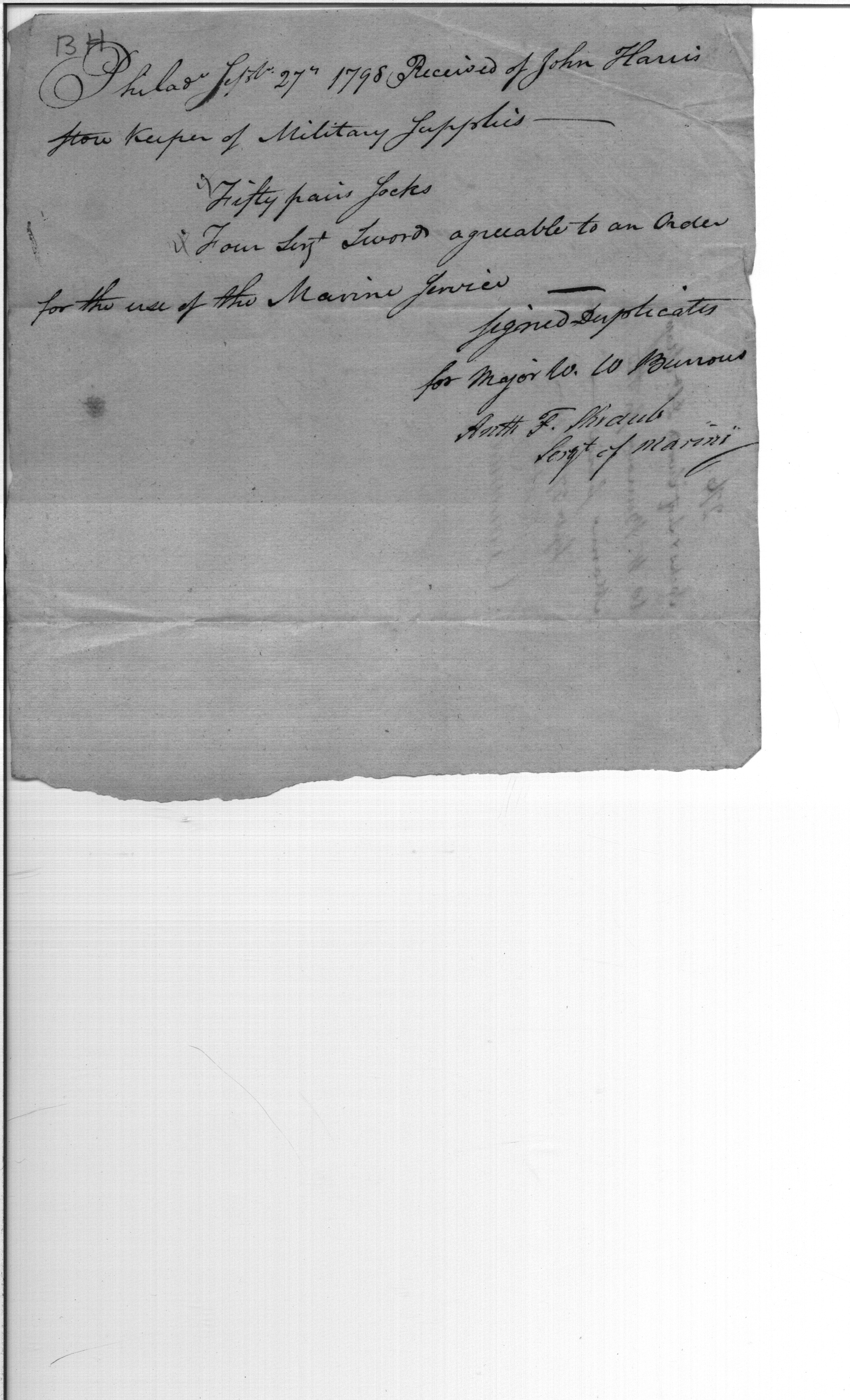 - Document: Receipt for Socks & Swords for Marines