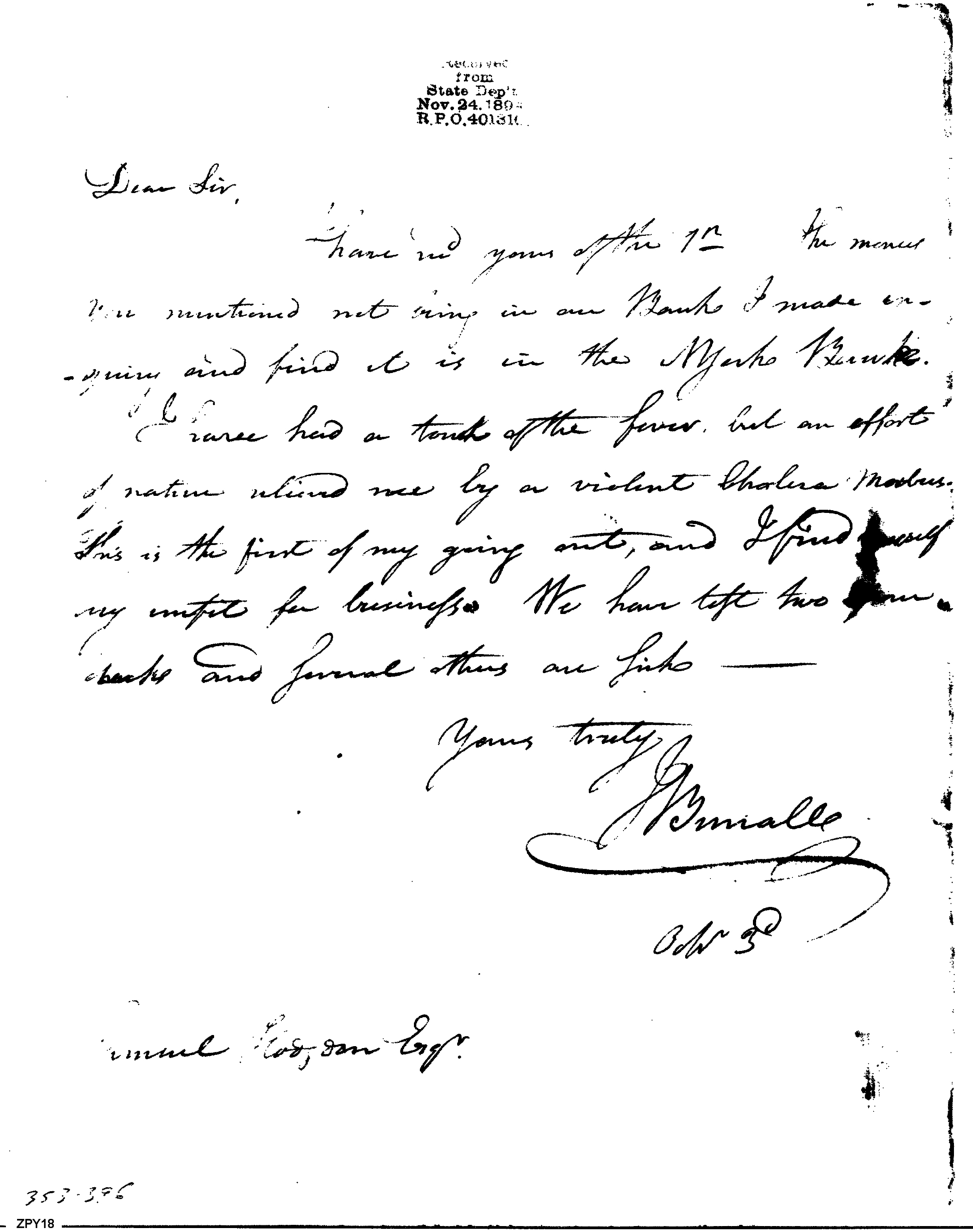 - Document: Nature Relieved Me by a Violent Cholera, Etc.