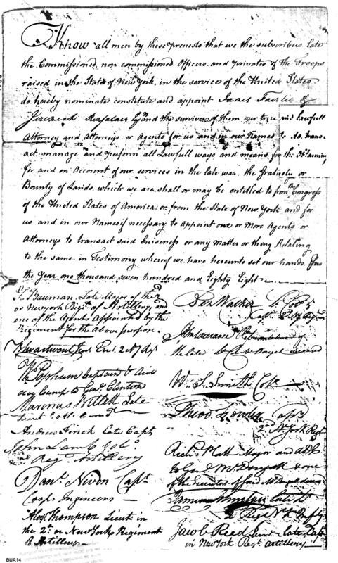 - Document: Power of attorney given by troops raised in New York