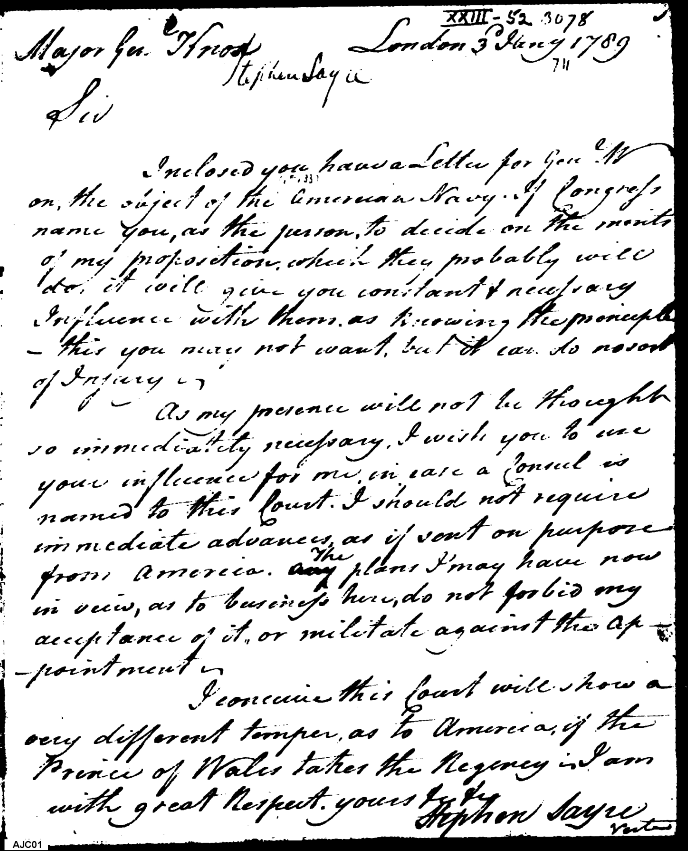 - Document: Sayre solicits naval appointment from Knox