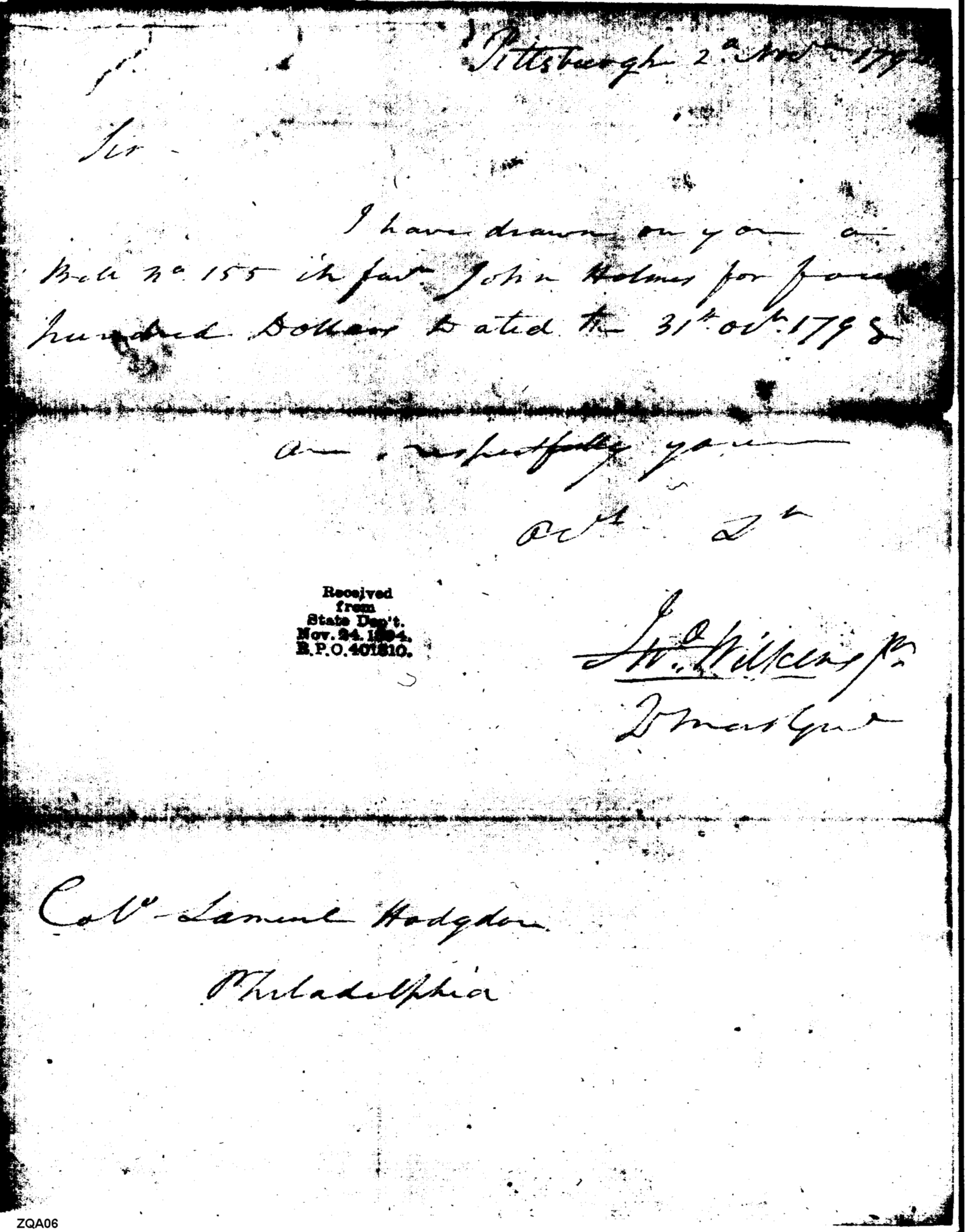 - Document: Bill Drawn in Favor of John Holmes