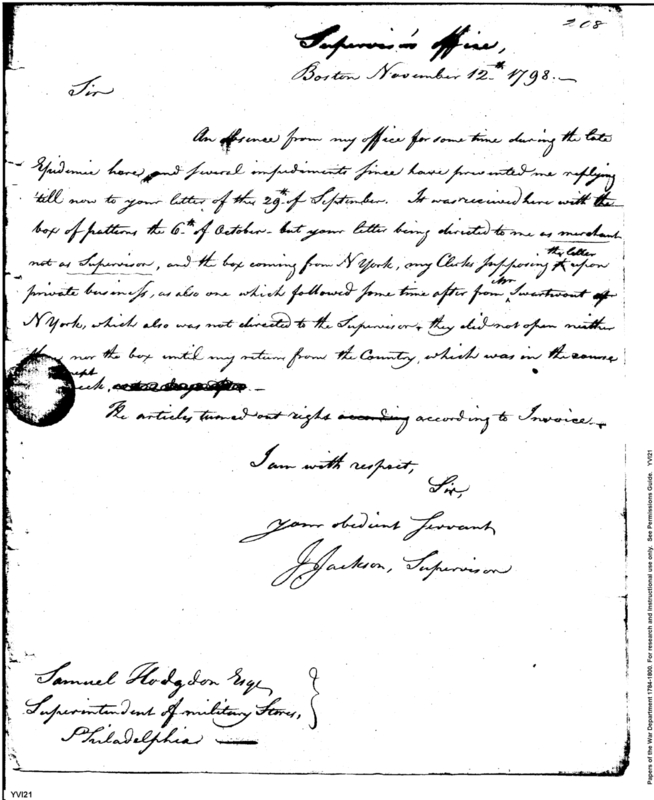 - Document: Letter to the Superintendent of Military Stores
