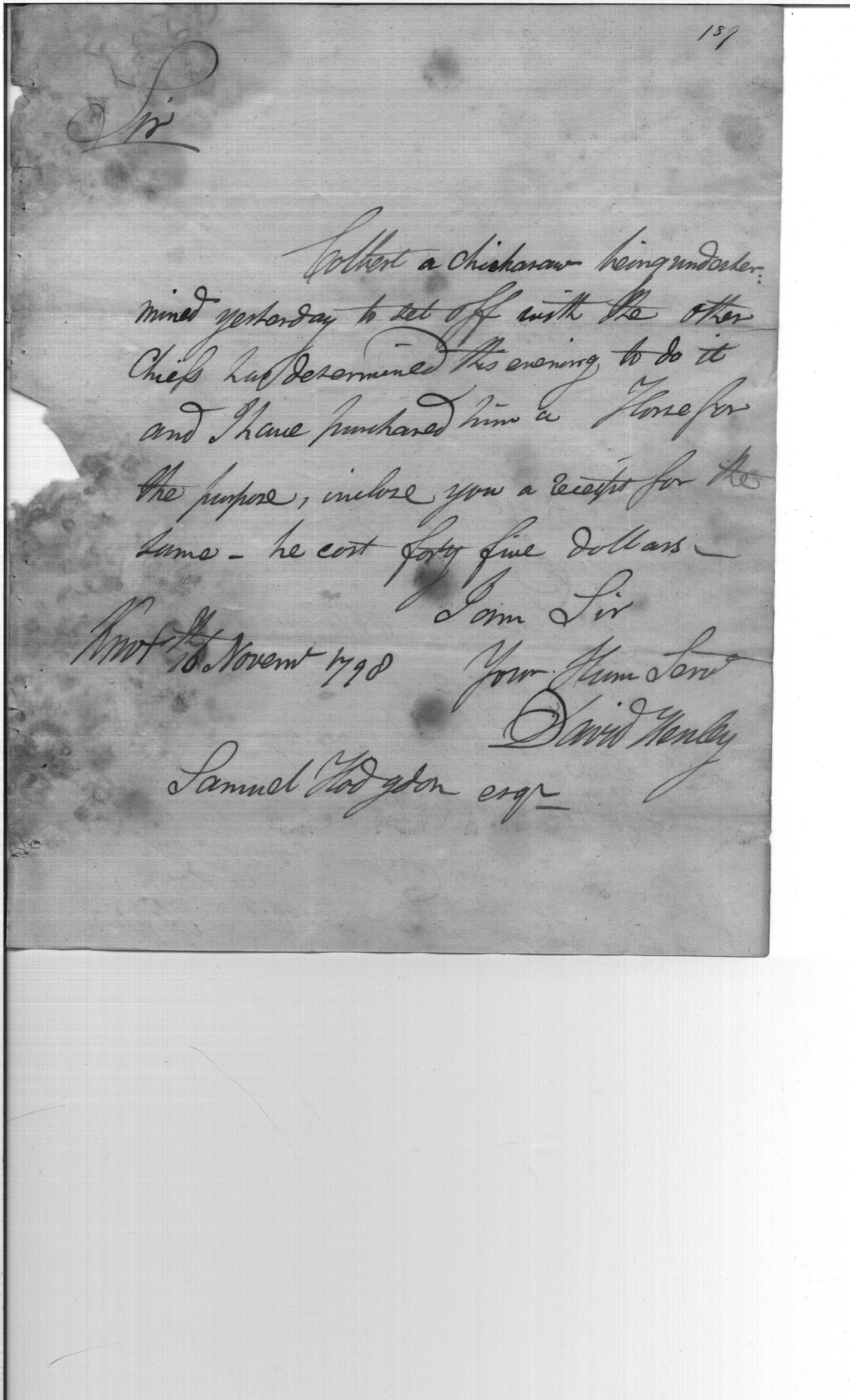 - Document: Purchase of a horse for a Chickasaw chief