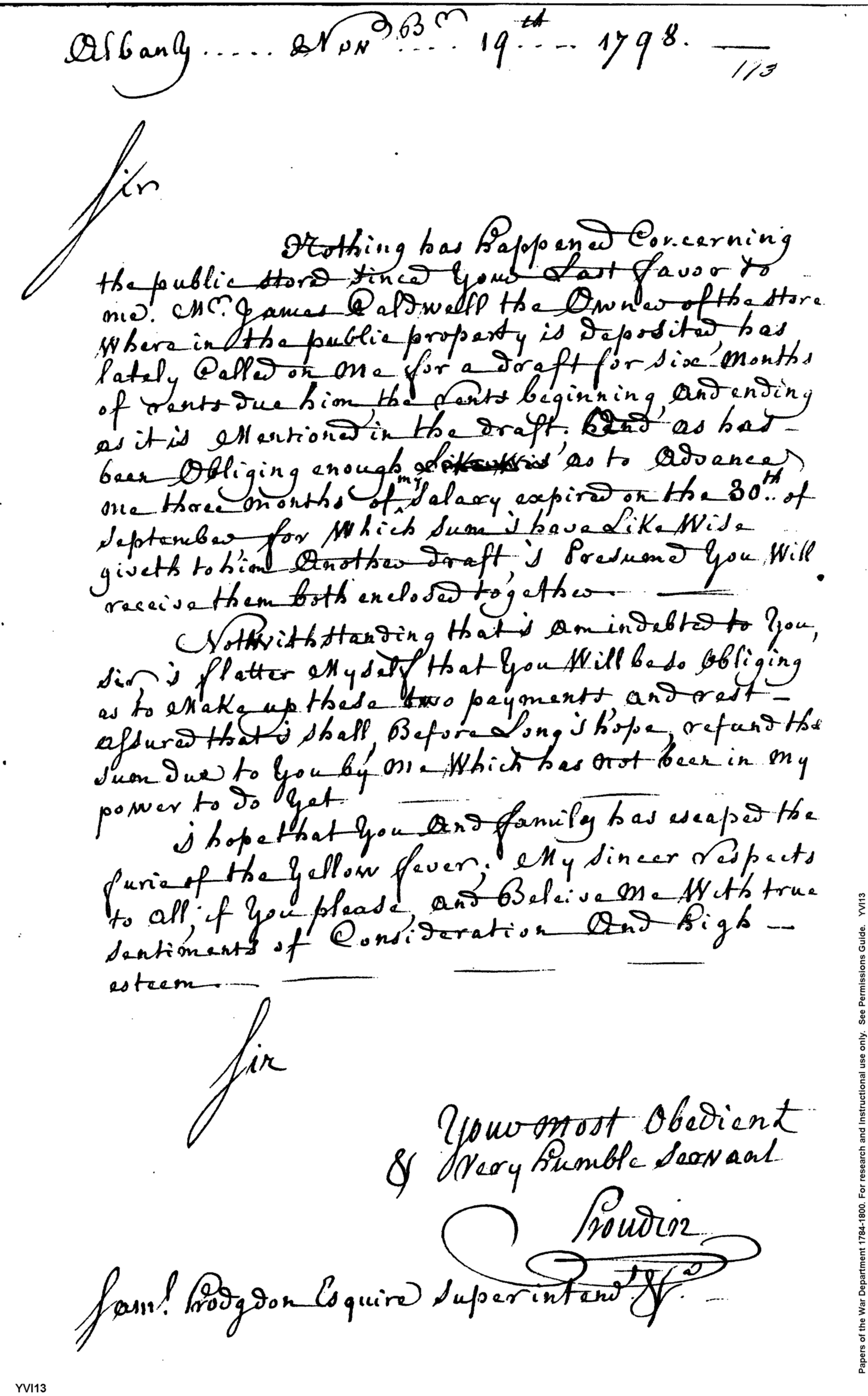 - Document: Letter to the Superintendent of Military Stores