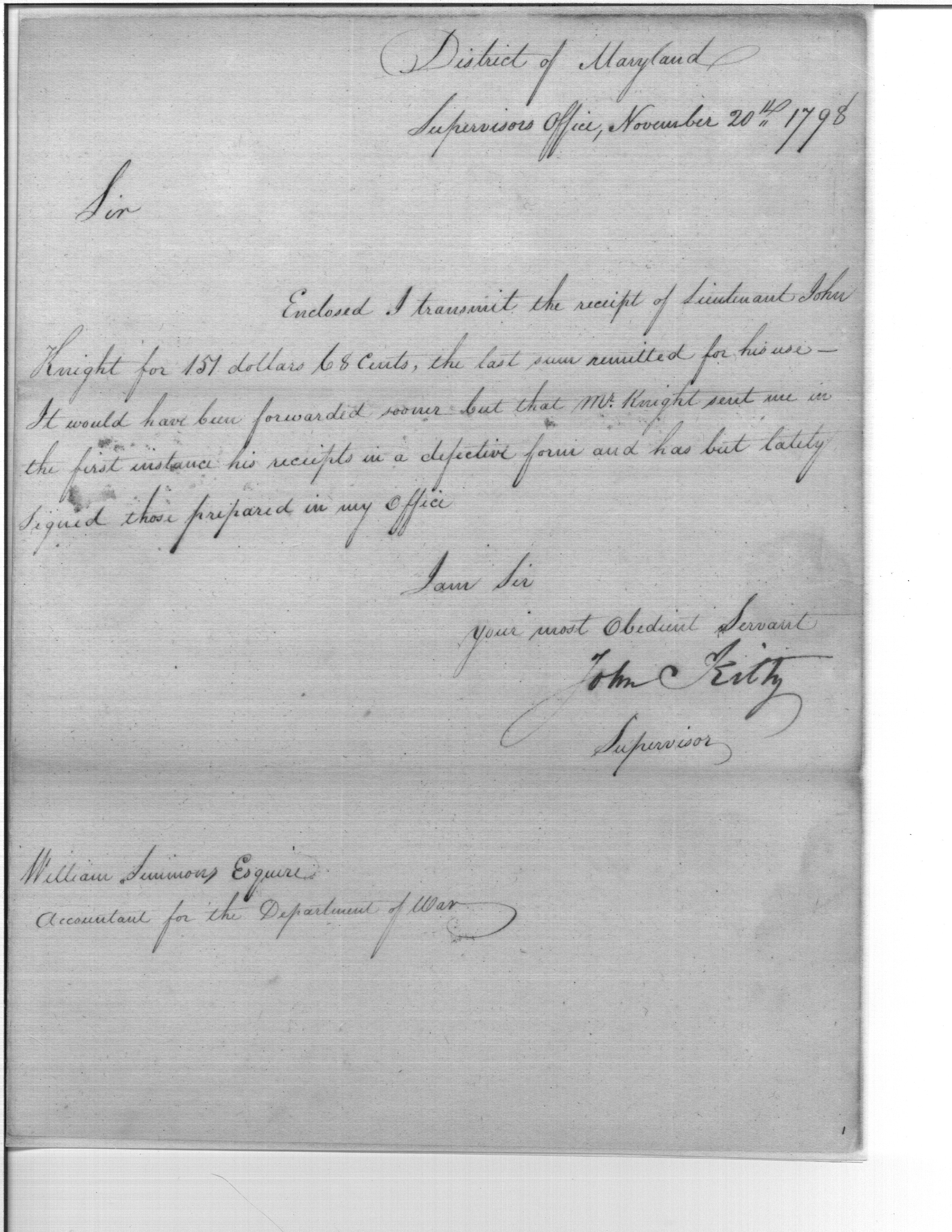 - Document: Late Receipts of John Knight Enclosed
