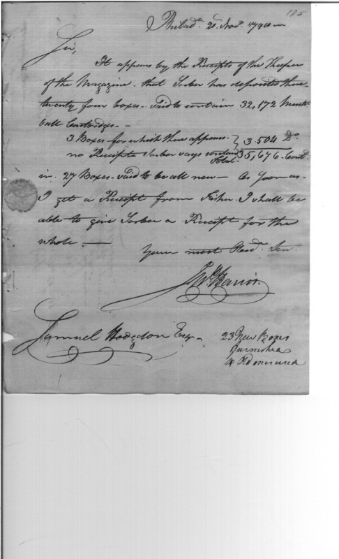 - Document: Depositing boxes of musketball cartridges