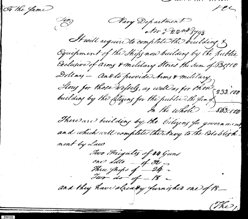 - In source: Collection: Letters Sent by the Secretary of the Navy to Federal Executive Agents (Letters to President, Secretary of State, Secretary of War, and Letters to (Requisitions on) Secretary of the Treasury and other Treasury Department Officials), June 1798-June 1824. (RG45)