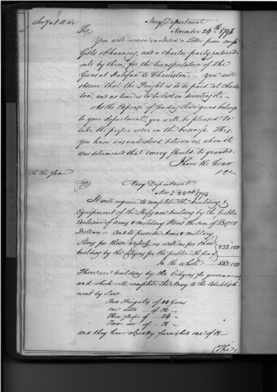 - In source: Collection: Letters Sent by the Secretary of the Navy to Federal Executive Agents (Letters to President, Secretary of State, Secretary of War, and Letters to (Requisitions on) Secretary of the Treasury and other Treasury Department Officials), June 1798-June 1824. (RG45)
