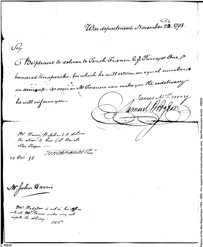- In source: Collection: Correspondence, Reports, Returns, Bills, Accounts Current' Statements, Receipts, Vouchers and Contracts of Philadelphia Supply Agencies (Coxe and Irvine Papers), 1794-1842. (RG92)