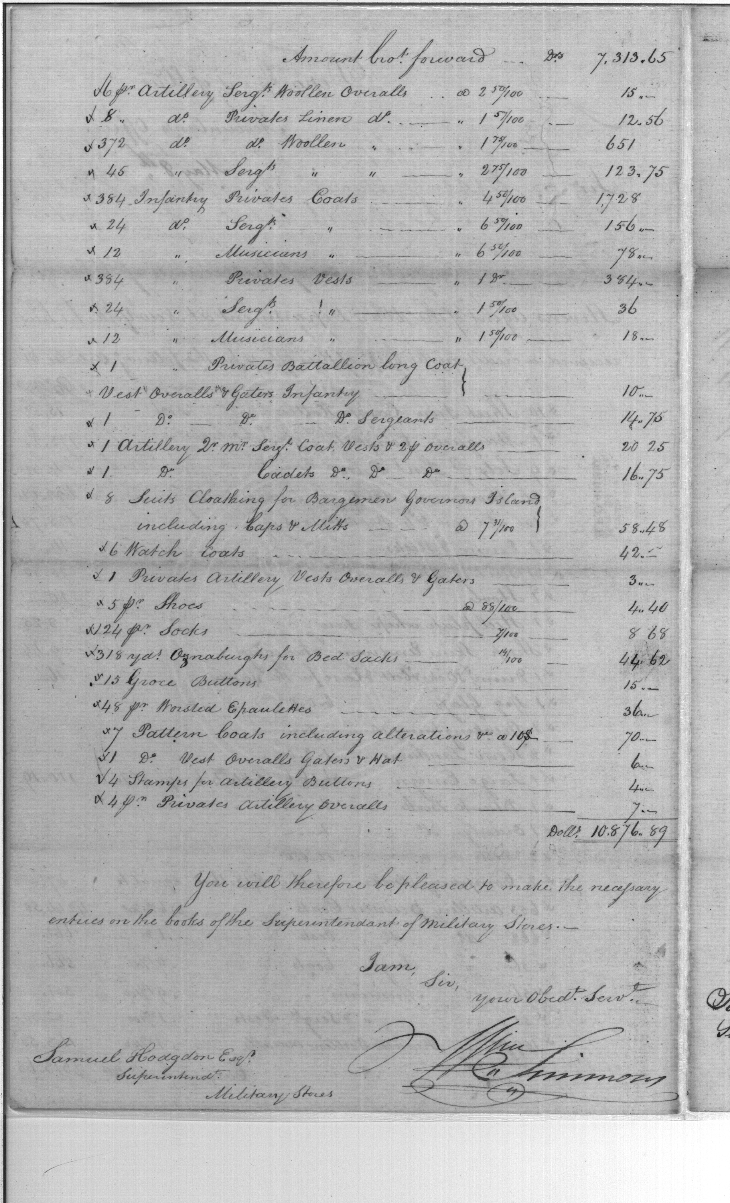- Document: Receipt for 200 Pairs of Overalls