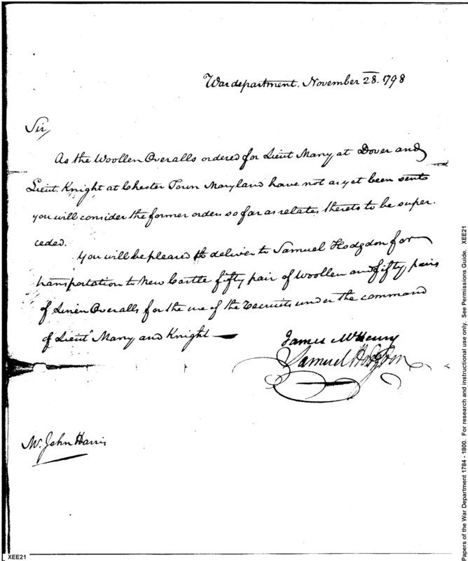 - In source: Collection: Correspondence, Reports, Returns, Bills, Accounts Current' Statements, Receipts, Vouchers and Contracts of Philadelphia Supply Agencies (Coxe and Irvine Papers), 1794-1842. (RG92)