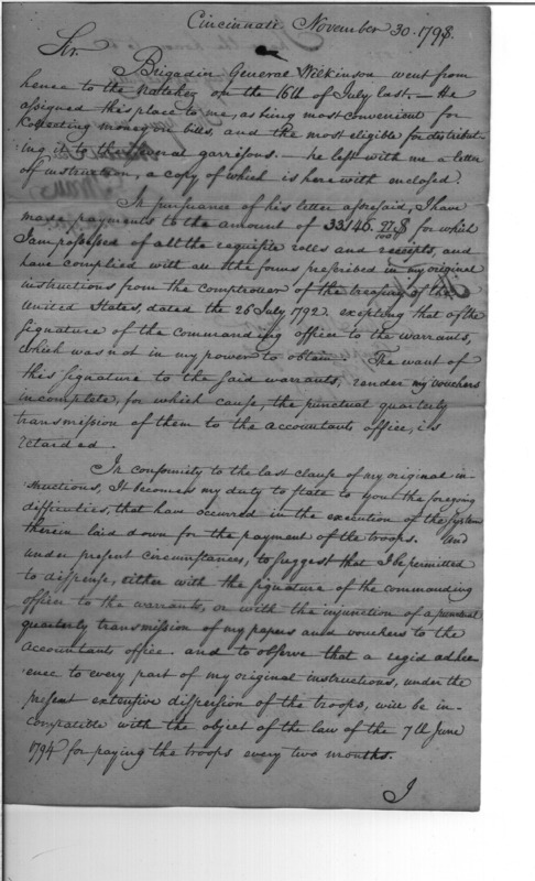 - Document: Difficulties in the manner of paying troops while General Wilkinson is away