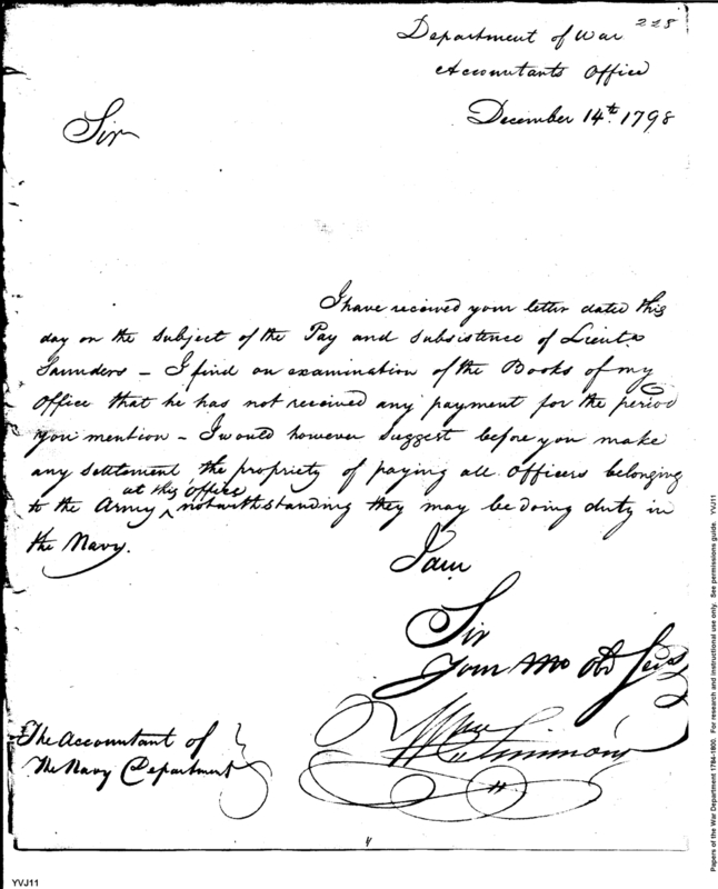 - Document: Concerning the pay for Lieutenant Saunders