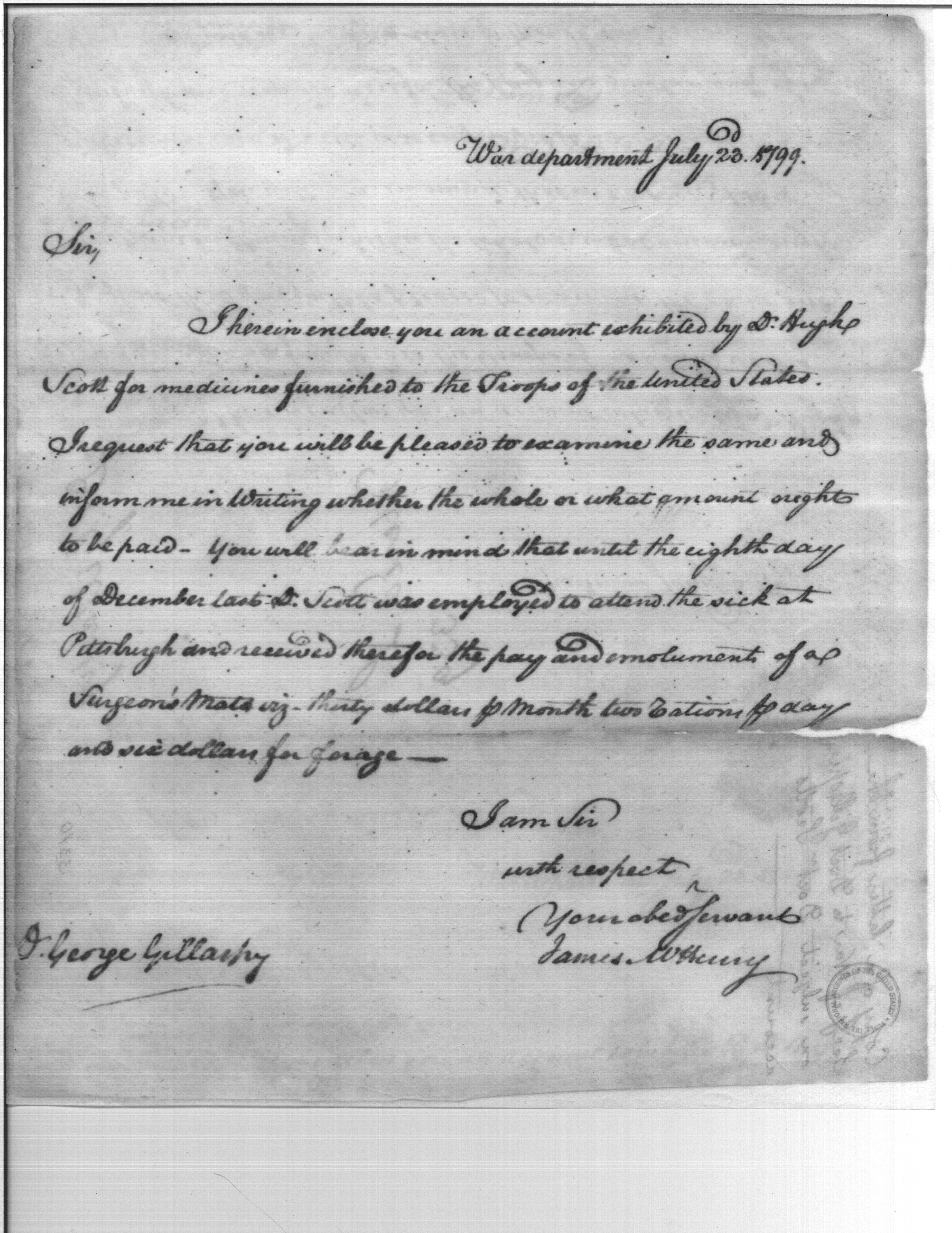 - Document: Account of Medicines Expended June - Dec 1798 by Doctor Hugh Scott at Fort Fayette