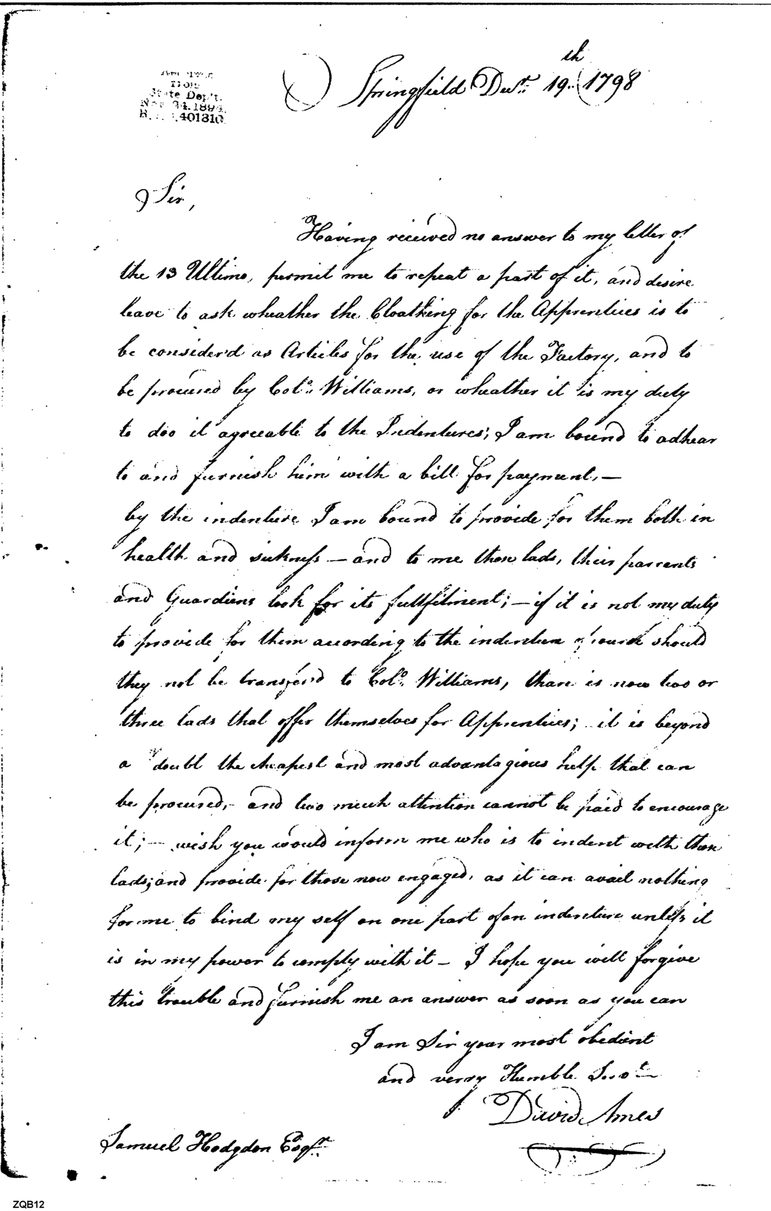 - Document: Responsibility for Clothing Apprentices, Etc.