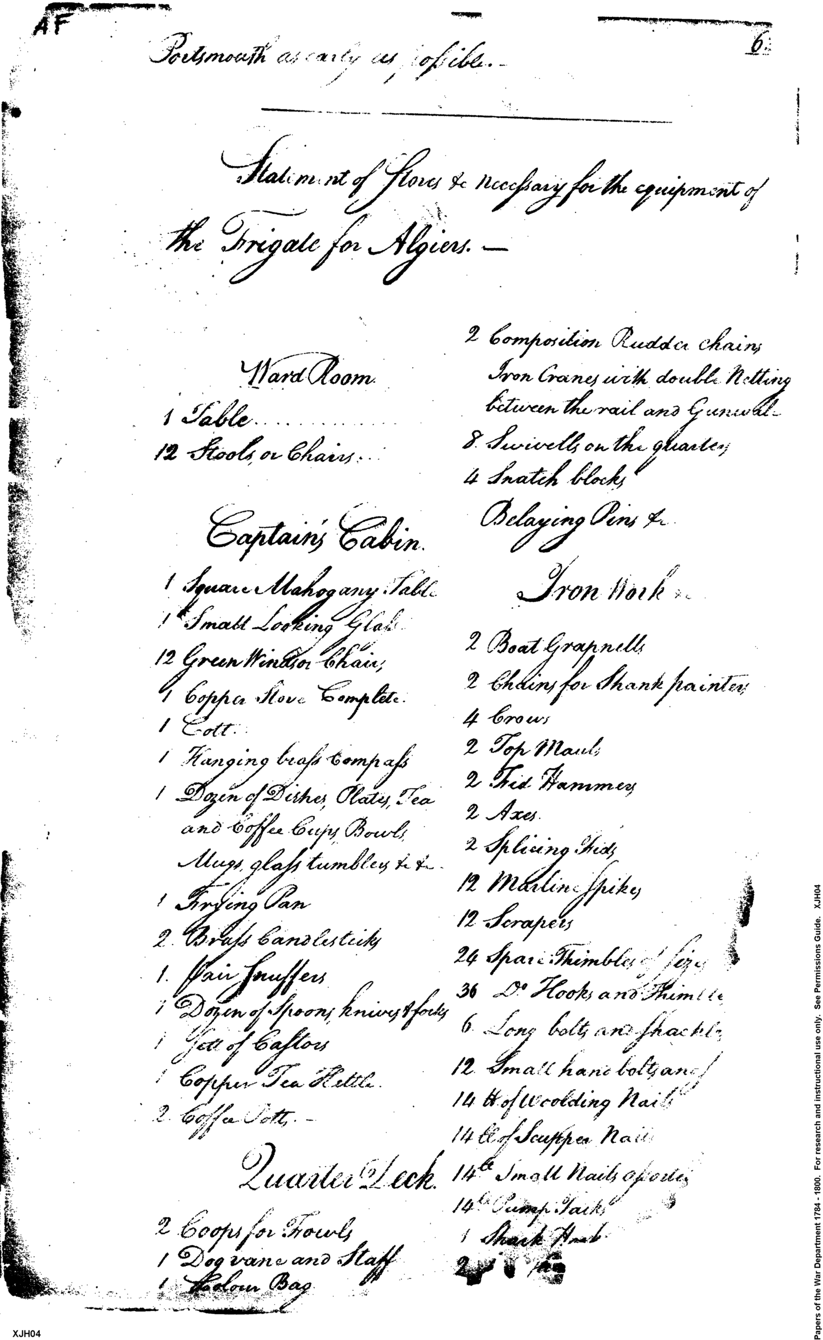 - Document: Stores Necessary for Equipping the Frigate for Algiers