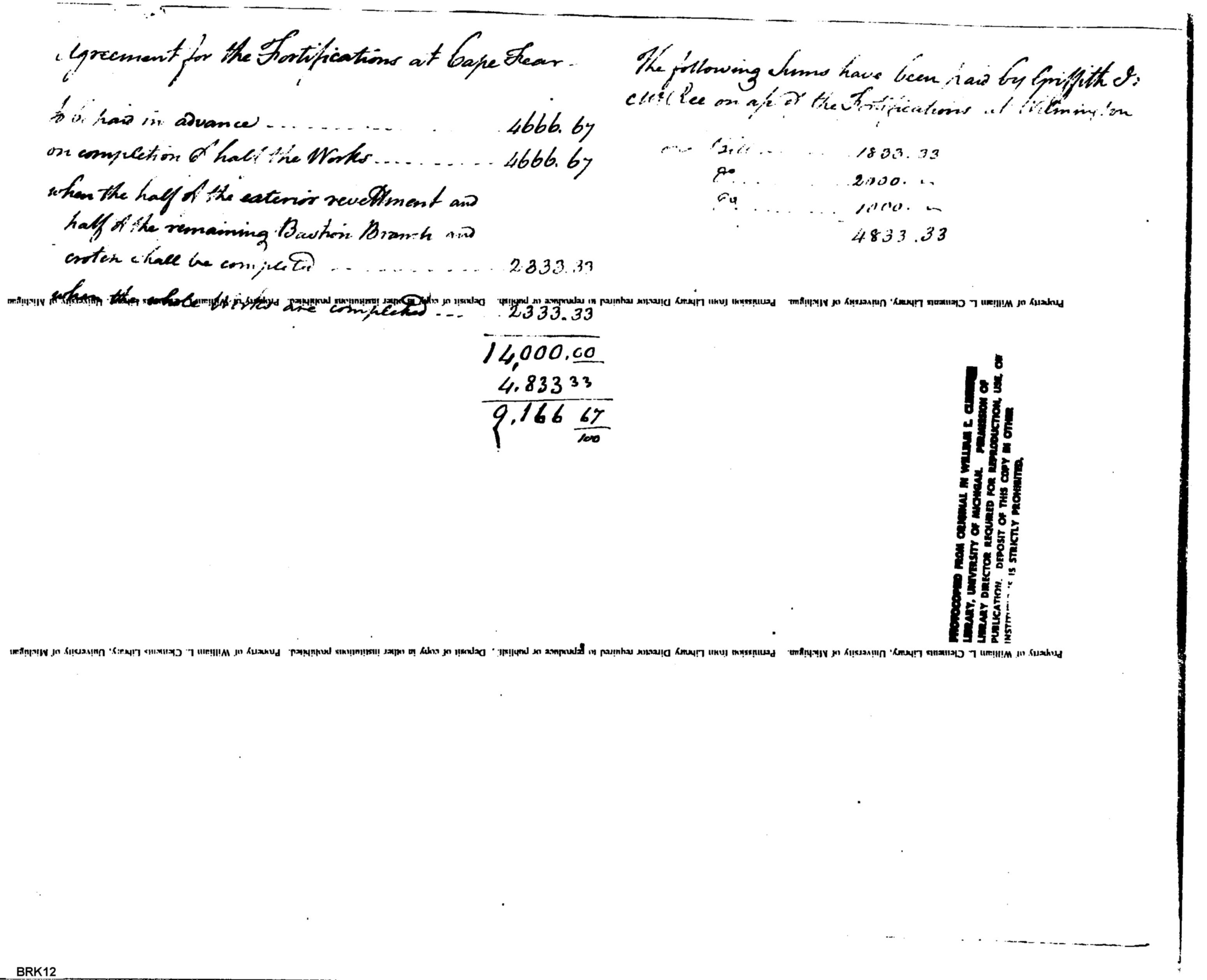 - Document: Account of the sums paid for the Wilmington fortifications
