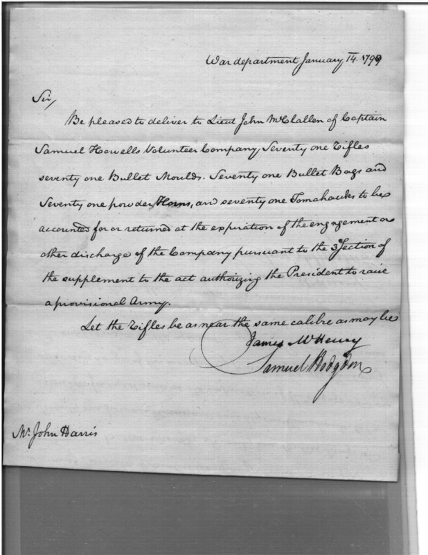 - Document: Request for Temporary Issue of Rifles, Accoutrements, & Tomahawks to Volunteers
