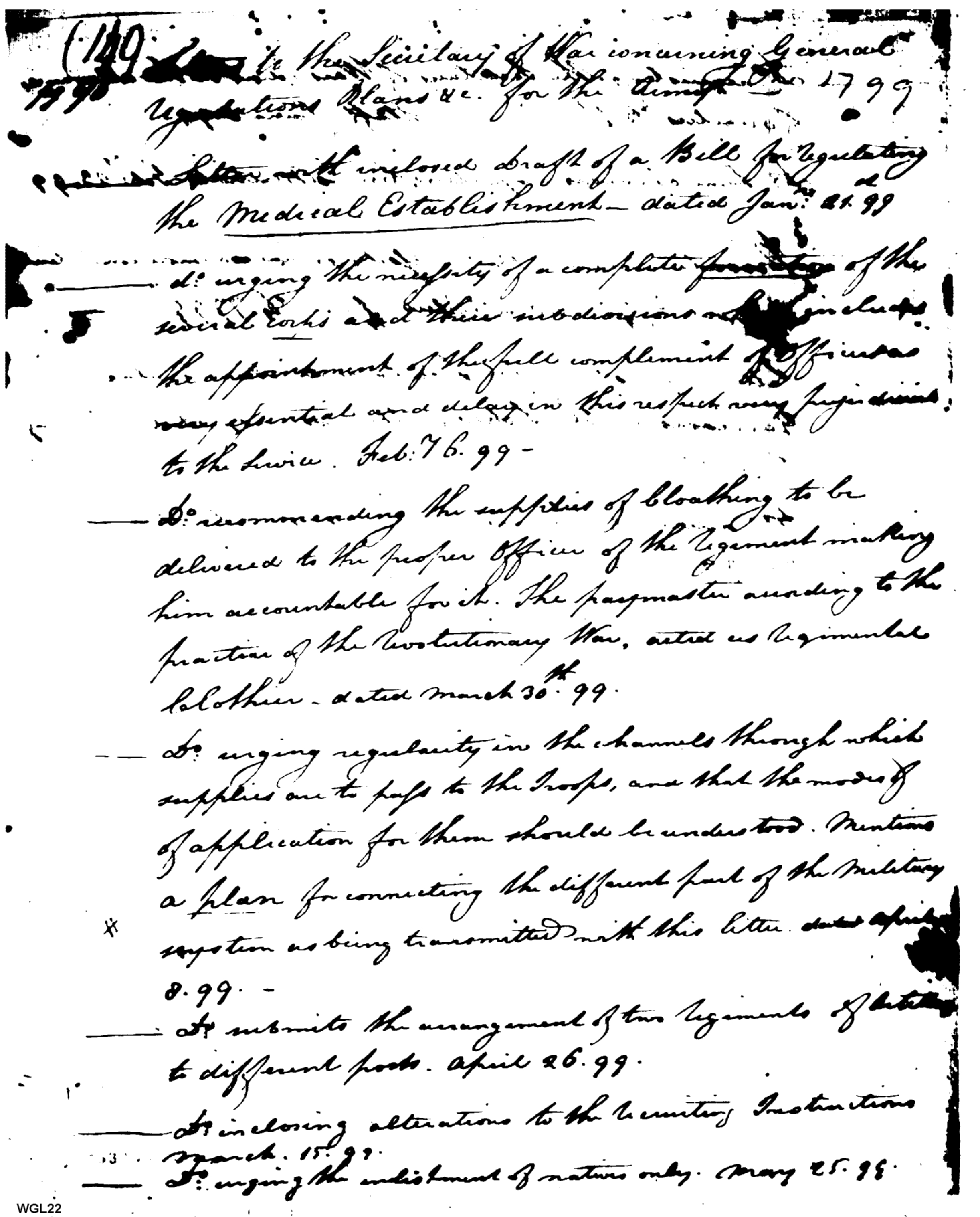 - Document: Letters Regarding Regulations & Plans for the Army