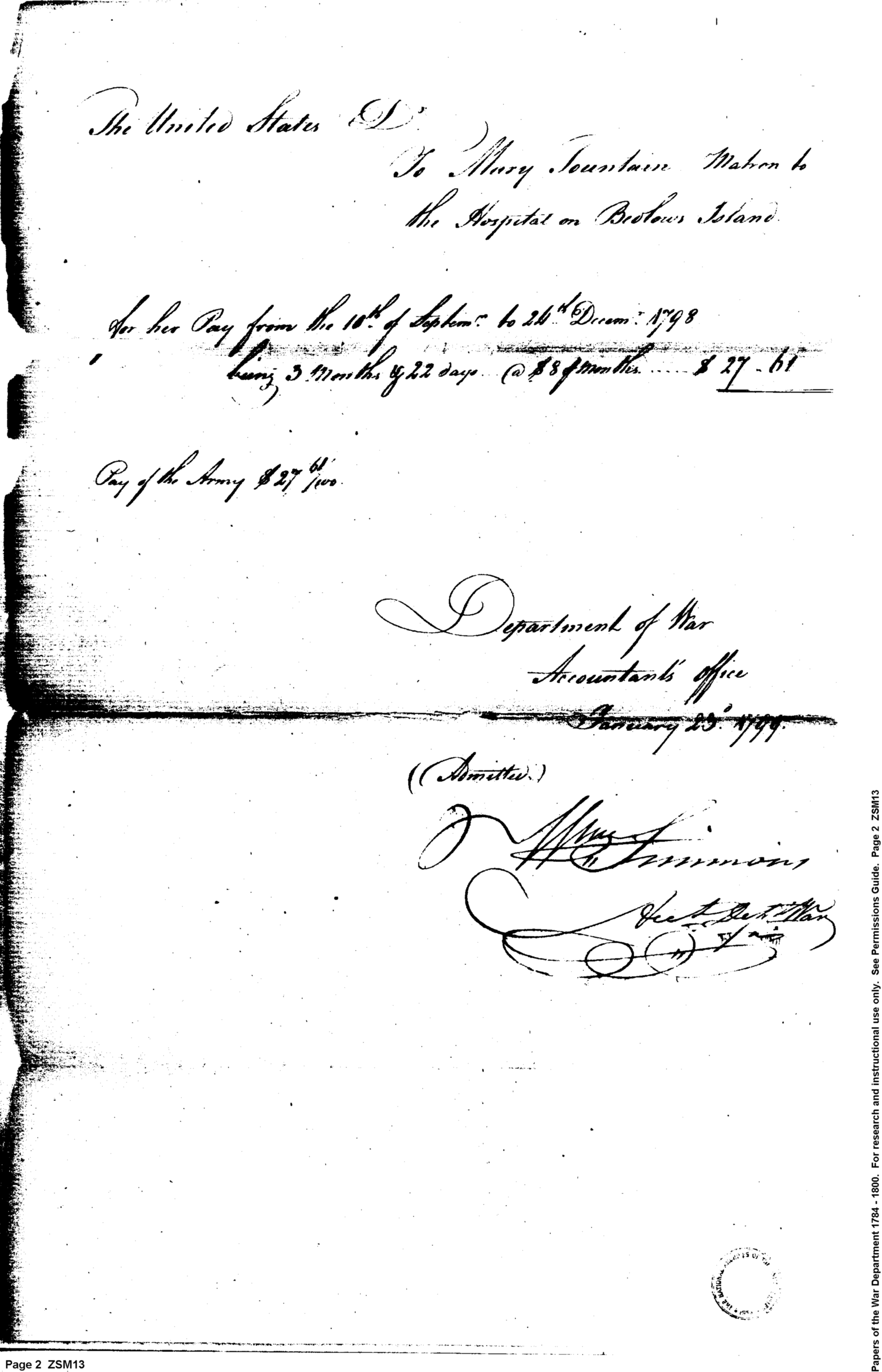- In source: Collection: Receipts for Moneys Advanced (Advances), 1793-1855. (RG217)