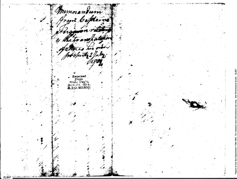 - In source: Collection: Post Revolutionary War Papers, 1784-1815. (RG94)
