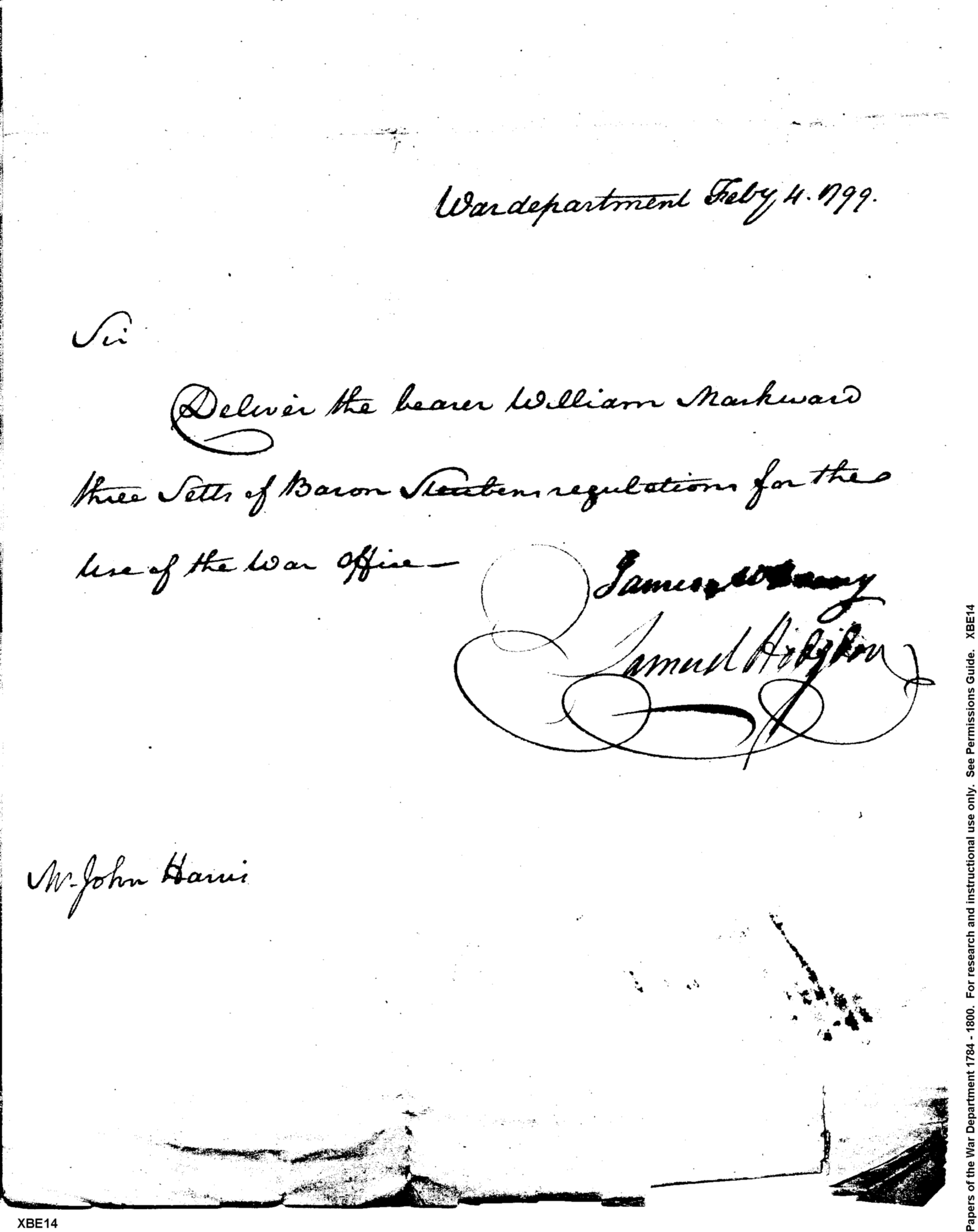 - Document: Request for Issue of Steuben's Regulations for War Office