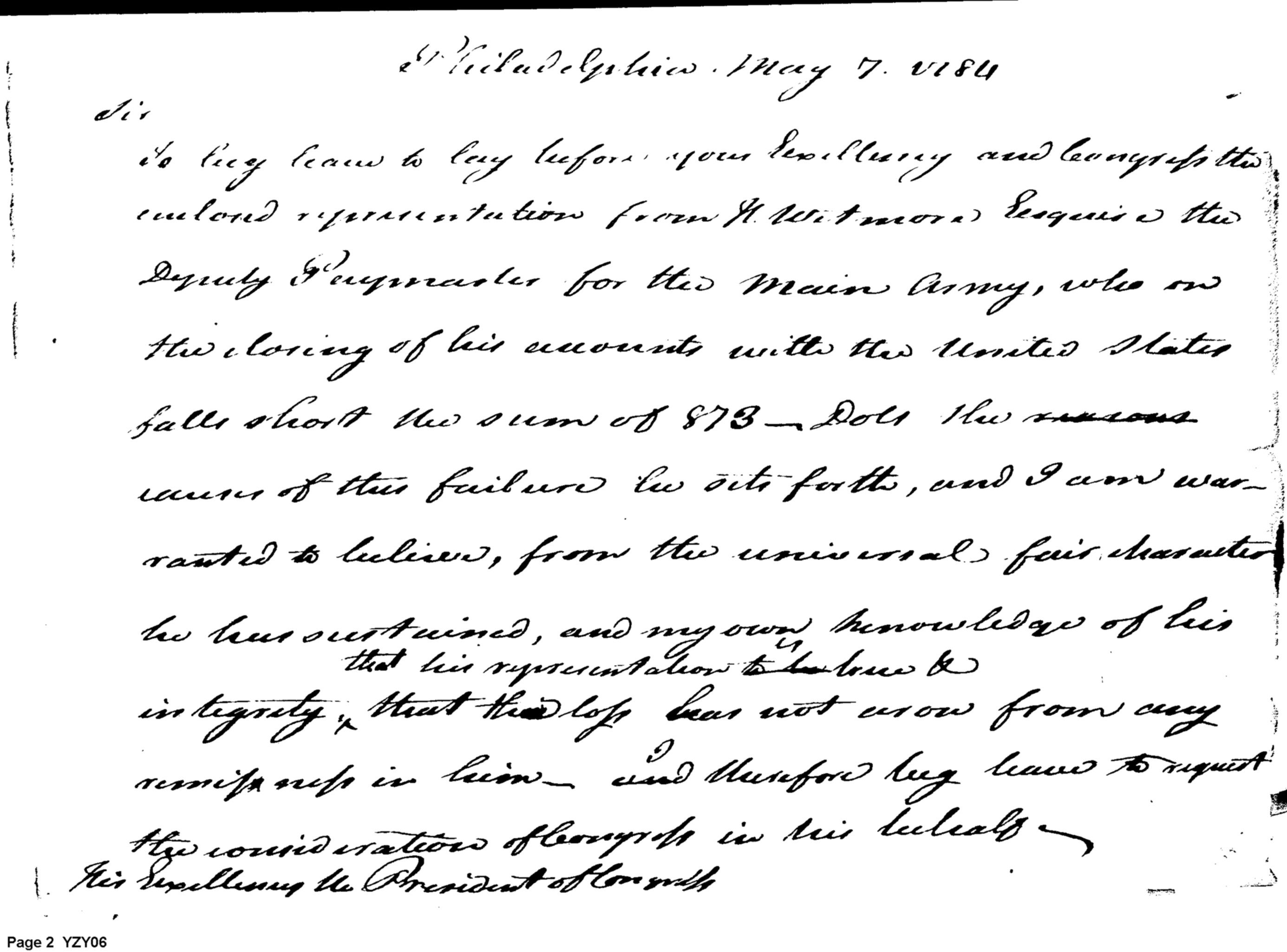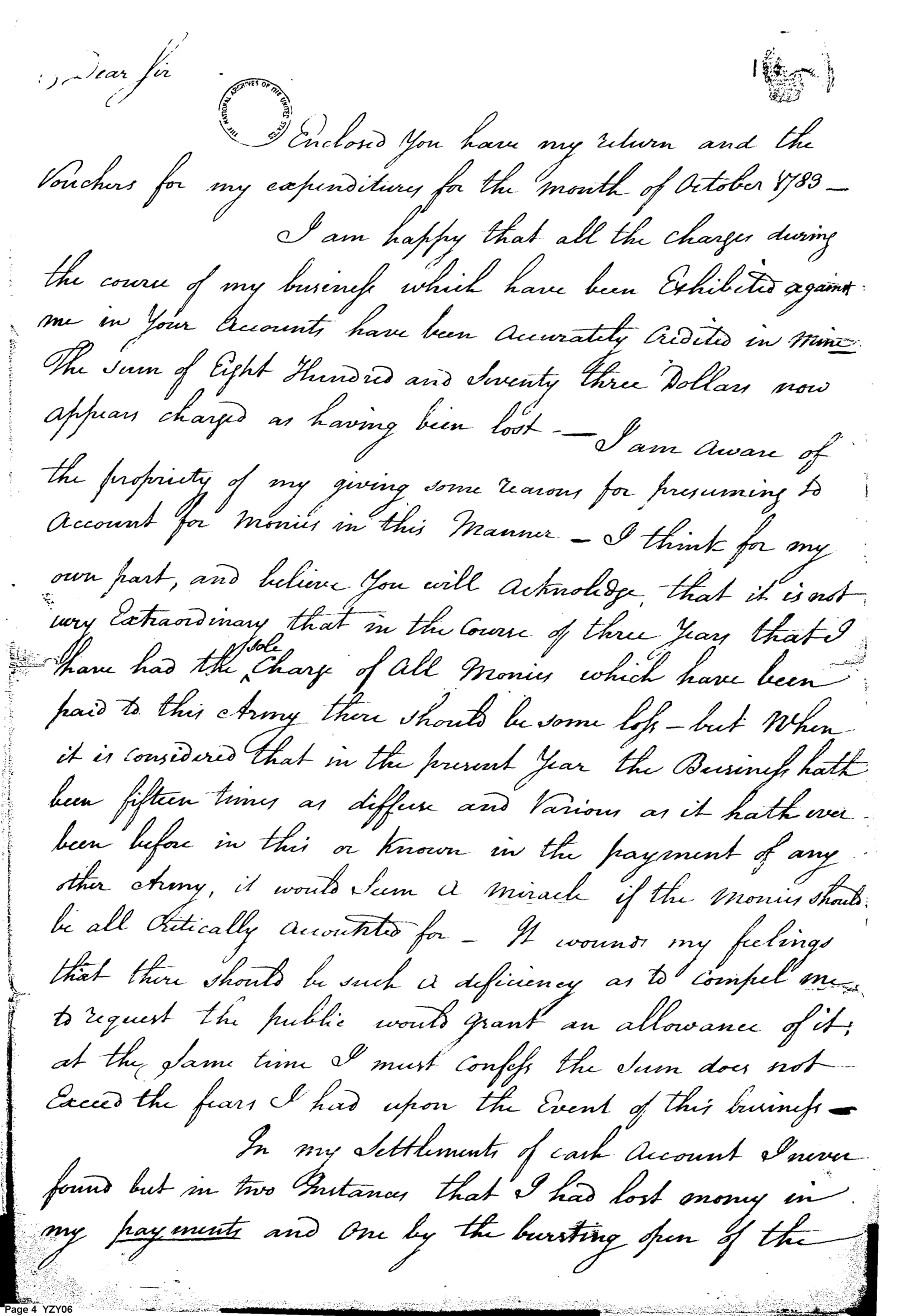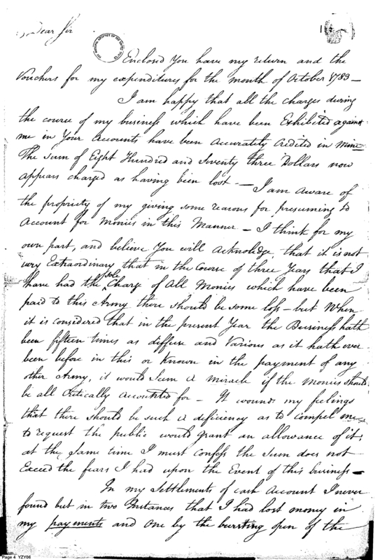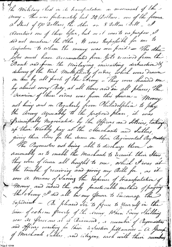 - Document: Report from Deputy Paymaster of the Main Army
