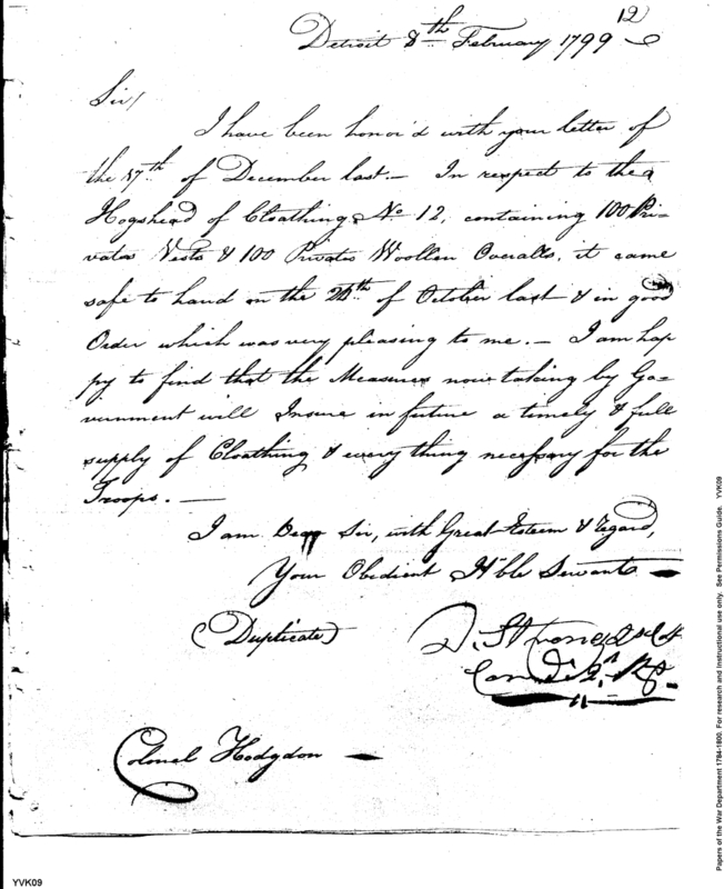 - Document: Receipt of clothing for the troops in Detroit