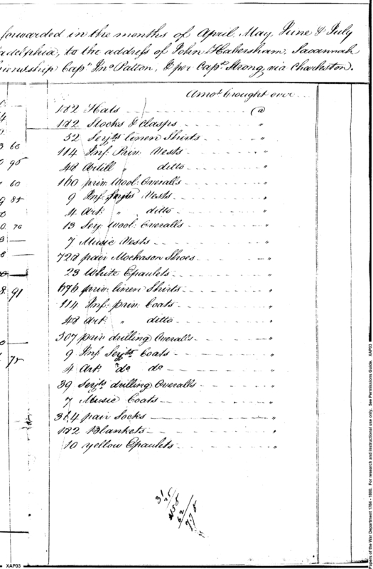 - Document: More Detailed Account of Military Stores Chargeable against the State of Georgia, from 1793 Shipments