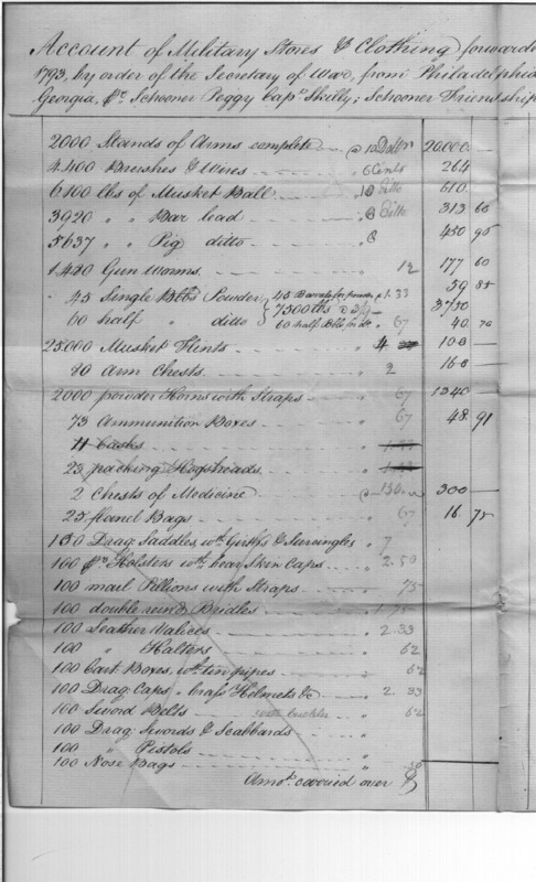 - Document: More Detailed Account of Military Stores Chargeable against the State of Georgia, from 1793 Shipments