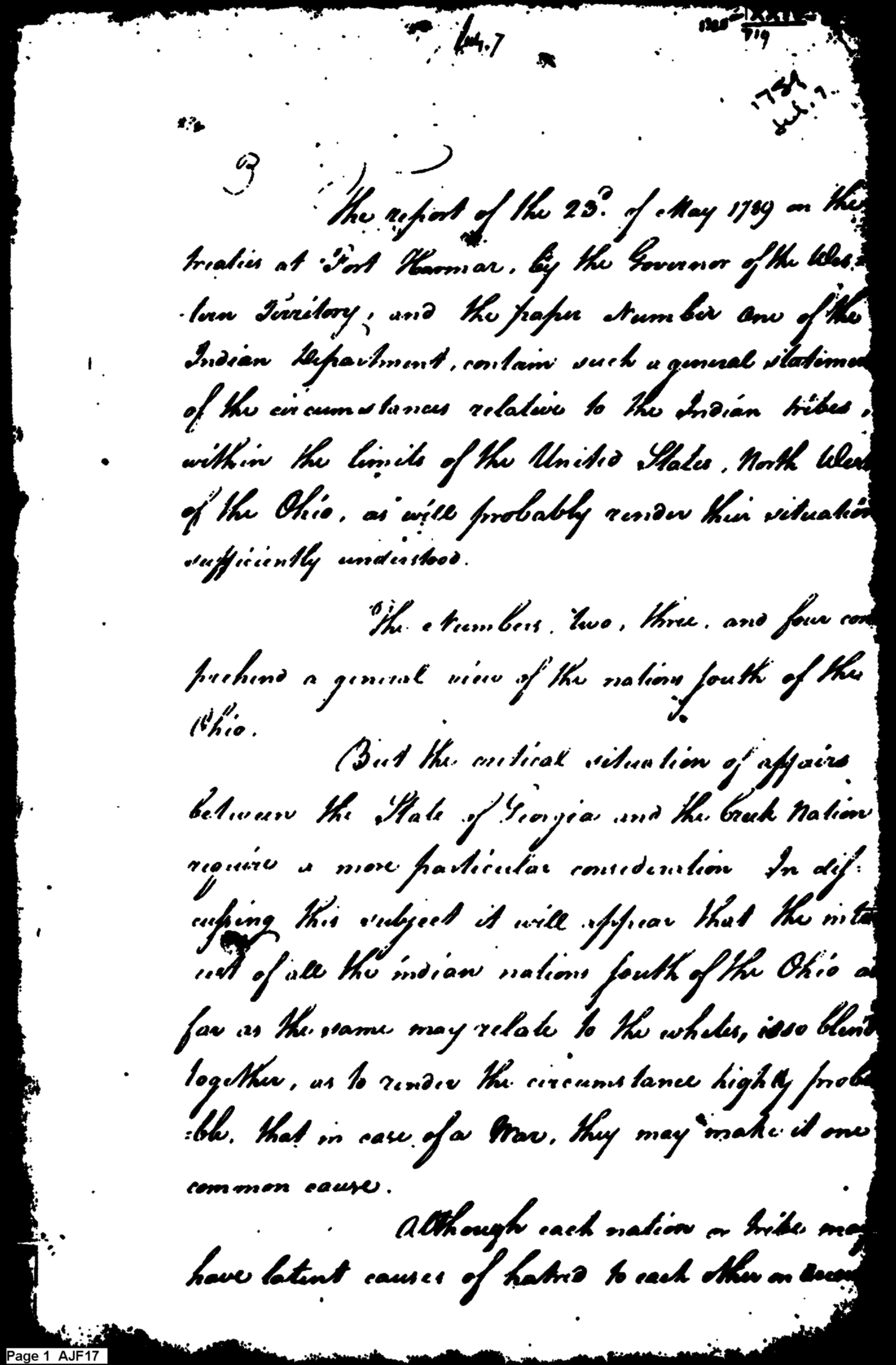 - Document: Reports on the Southern Tribes and Likelihood of War