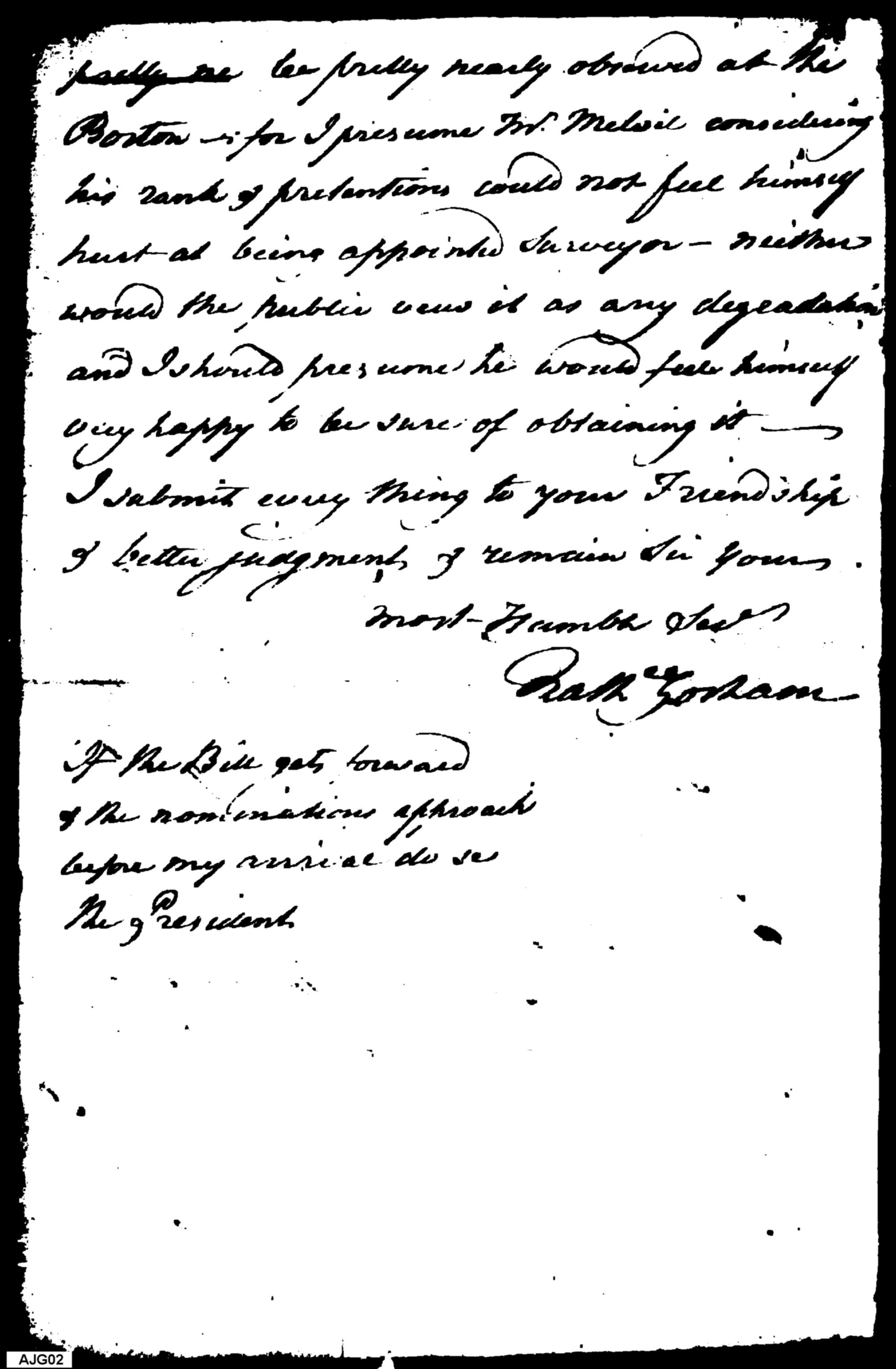 - Document: Gorham requests to have his views presented to the President