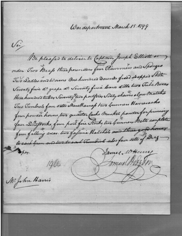 - Document: Request for Issue of Cannon, Cannon Implements, & Artillerists' Accoutrements
